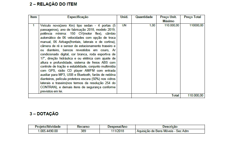 Rodas esportivas aro 17, bancos revestidos de couro e central multimídia. Estes itens, que poderiam ser dispensáveis para reduzir custos, estão no edital lançado pela prefeitura de Catanduvas para aquisição de um veículo sedan para uso exclusivo do gabinete do prefeito Dorival Ribeiro dos Santos. O edital na modalidade de pregão eletrônico autorizou um gasto de até R$ 110 mil para a compra do veículo oficial. As propostas apresentadas pelas empresas já foram analisadas e pelas informações repassadas a Rádio Catarinense a vencedora foi da cidade de Tubarão com o valor de R$ 98.700,00. O fato é que o veículo oficial da prefeitura nem mesmo saiu da garagem e já está andando na contramão do que vem sendo feito pela maioria dos municípios da AMMOC que estão contendo despesas em razão da situação econômica do país.