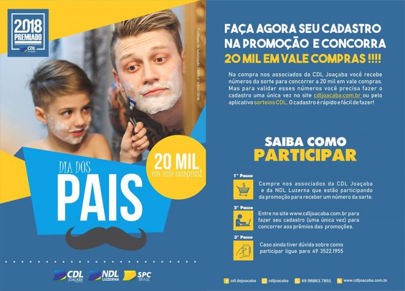 O Dia dos Pais está se aproximando e além de presentear, quem comprar no comércio de Joaçaba, nas lojas que participam da promoção 2018 Premiado, ainda corre o risco de ganhar vale-compras de até R$ 3 mil reais.