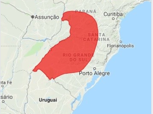 Desta forma, existe o risco de fortes tempestades com a possibilidade de granizo, ventos com rajadas acima de 60 km/h nesta sexta-feira.