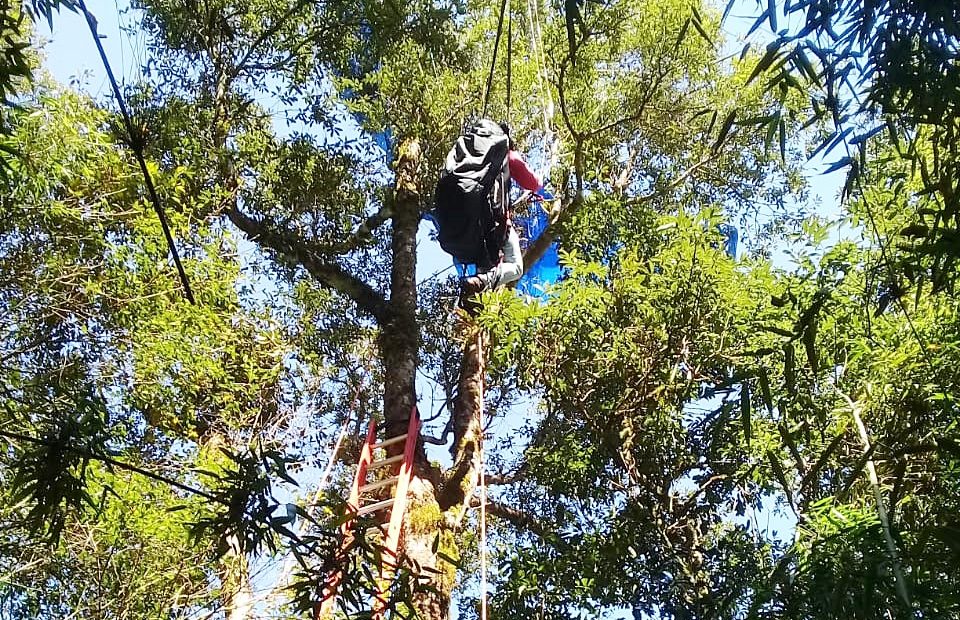 O Corpo de Bombeiros de Tangará resgatou na manhã deste domingo (09) um parapentista que ficou preso na copa de uma árvore. A ocorrência foi registrada por volta das 11h na Linha Santa Catarina, interior do município. Segundo as informações dos socorristas, o piloto acabou perdendo o controle do parapente que ficou enroscado na árvore após ter feito o salto no Morro do Agudo.