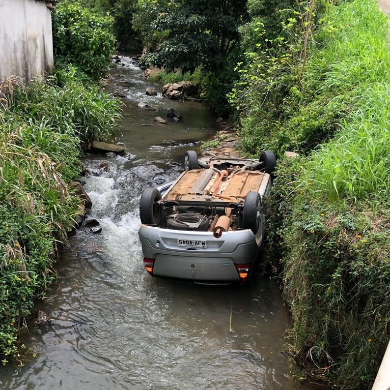 O carro acabou caindo dentro de um riacho, sendo que apesar do susto o casal nada sofreu, tanto é que dispensou o atendimento dos bombeiros para ser encaminhado ao hospital.