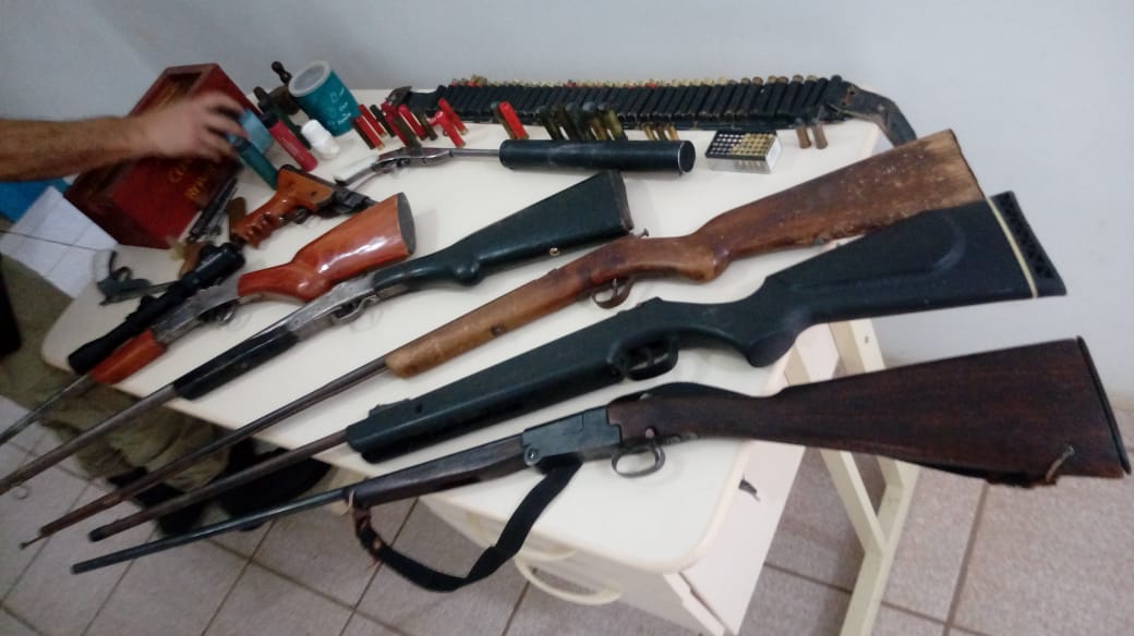Foram presos em flagrante dois homens de iniciais J.F., de 53 anos, e N.A.L., de 66 anos. Junto com os indivíduos foram encontradas várias armas de fogo e munição. Os homens foram encaminhados para a Delegacia de Erval Velho e posteriormente conduzidos ao Presídio Regional de Joaçaba.