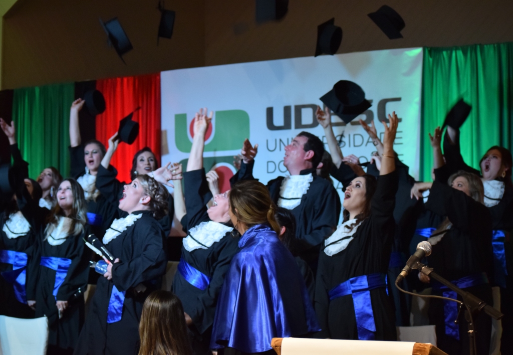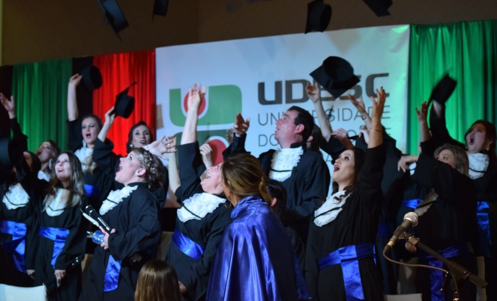 A Universidade do Estado de Santa Catarina (Udesc) realizou em Joaçaba nesta quinta-feira, 13, no Clube Cruzeiro, a cerimônia de outorga de grau de 24 alunos da turma de Licenciatura em Pedagogia na modalidade a distância. O curso iniciou em agosto de 2014, com duração de oito semestres.