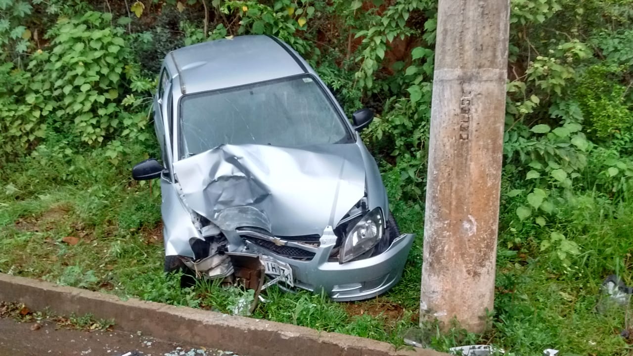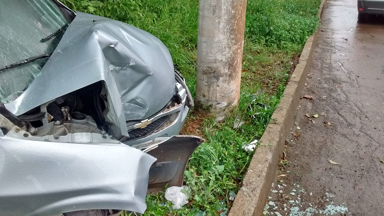 Veículo colide contra poste na Avenida Beira Rio em Herval d’Oeste