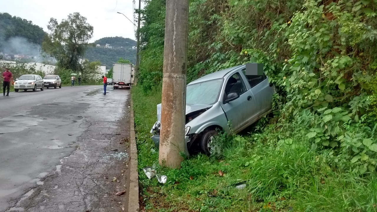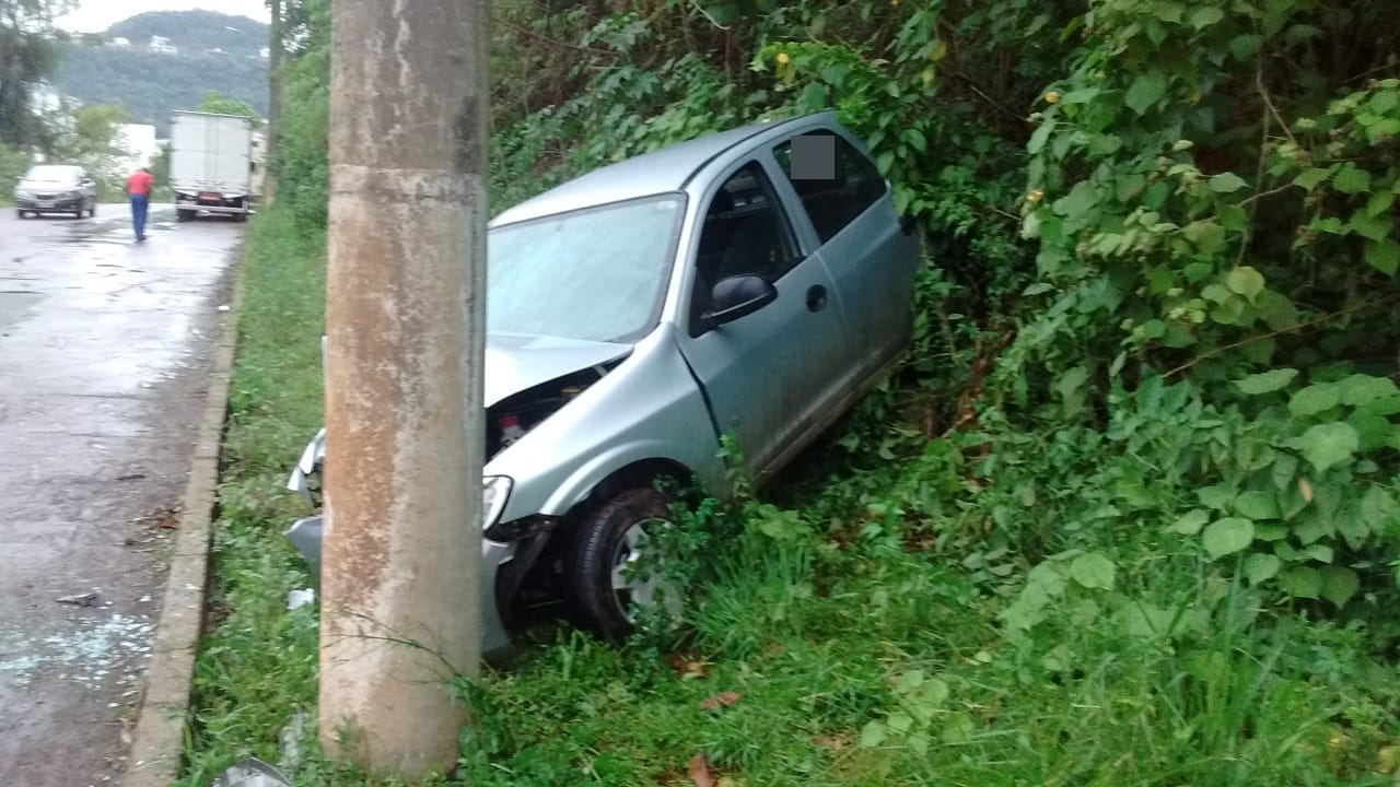 Um acidente de trânsito no final da tarde desta quarta-feira (26) mobilizou as equipes de resgate na avenida Beira Rio em Herval d’Oeste. Um GM/Celta colidiu de forma violenta contra um poste e depois saiu da pista. O veículo fazia sentido BRF/UPA. O motorista, que estava sozinho, sofreu ferimentos na cabeça e nos braços, e foi levado para o Hospital.