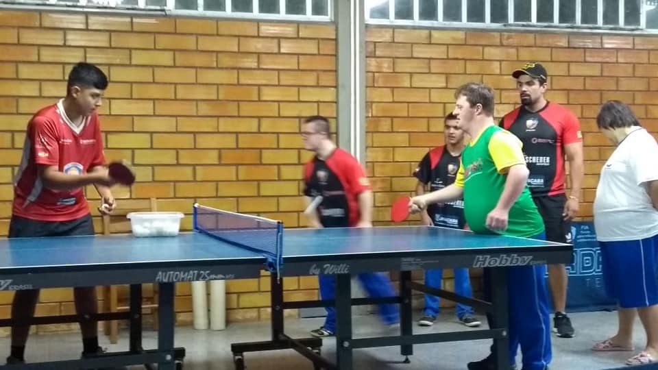 Neste mês, os alunos de tênis de mesa da Escola Especial Frei Bruno/APAE Joaçaba estiveram no Centro de Treinamento (CT) da Pró Tênis de Mesa de Joaçaba, para conhecer o local de treinamento dos atletas de rendimento e participar de um treino.