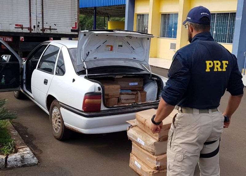 A equipe da PRF realizava ronda, quando solicitou a parada de um GM/Vectra de Francisco Beltrão (PR) que transitava com os faróis apagados na rodovia.