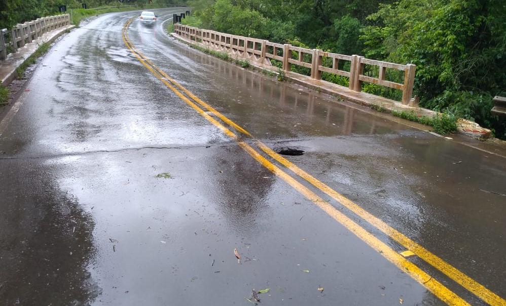 A forte chuva registrada nesta quarta-feira (17), já está ocasionando preocupação e prejuízo para a região. Depois que alguns motoristas reclamarem de um buraco que estava se abrindo na SC-150 que liga as cidades de Joaçaba e Lacerdópolis, o DEINFRA juntamente com a Polícia Militar Rodoviária de Ibicaré, fizeram a sinalização do local para evitar acidentes.