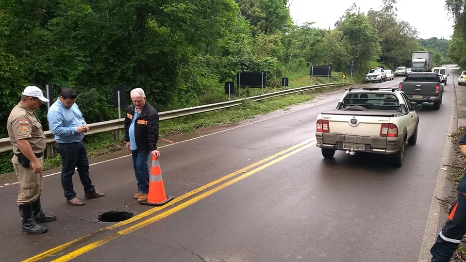 A equipe fez uma vistoria do local e decidiu por uma medida paliativa, para manter o tráfego aberto, com a colocação de pedra de mão na deformidade. O ponto está sinalizado com cones. O trabalho deverá ser feito ainda hoje em parceria com a prefeitura de Lacerdópolis. Conforme Gemelli, posteriormente uma obra de recuperação deverá ser providenciada pelo governo do estado.
