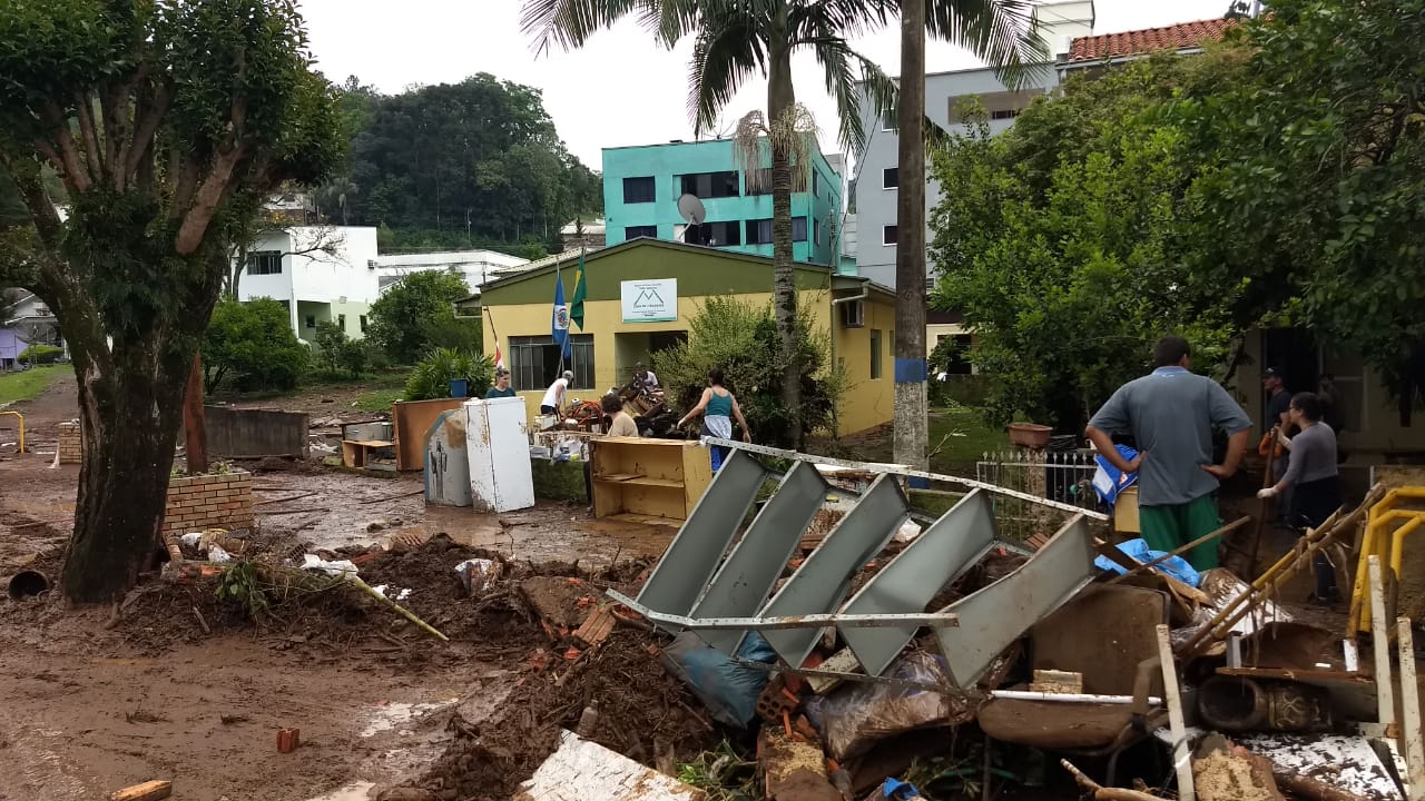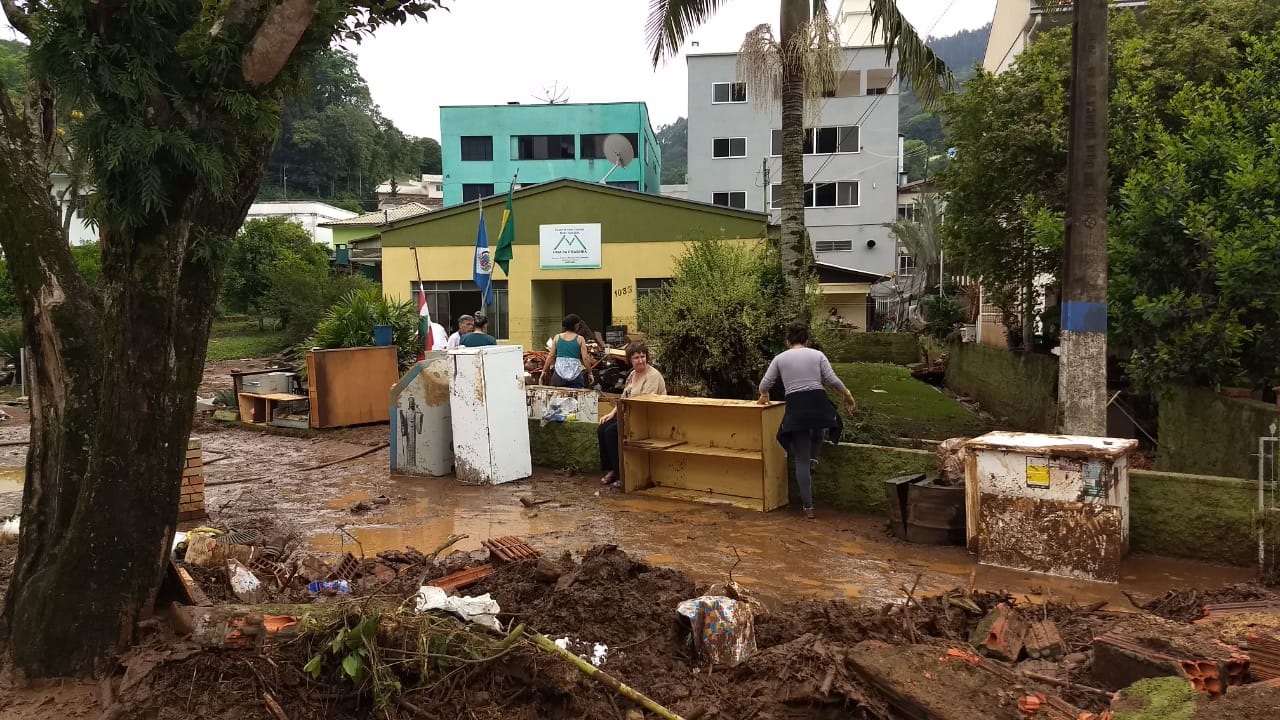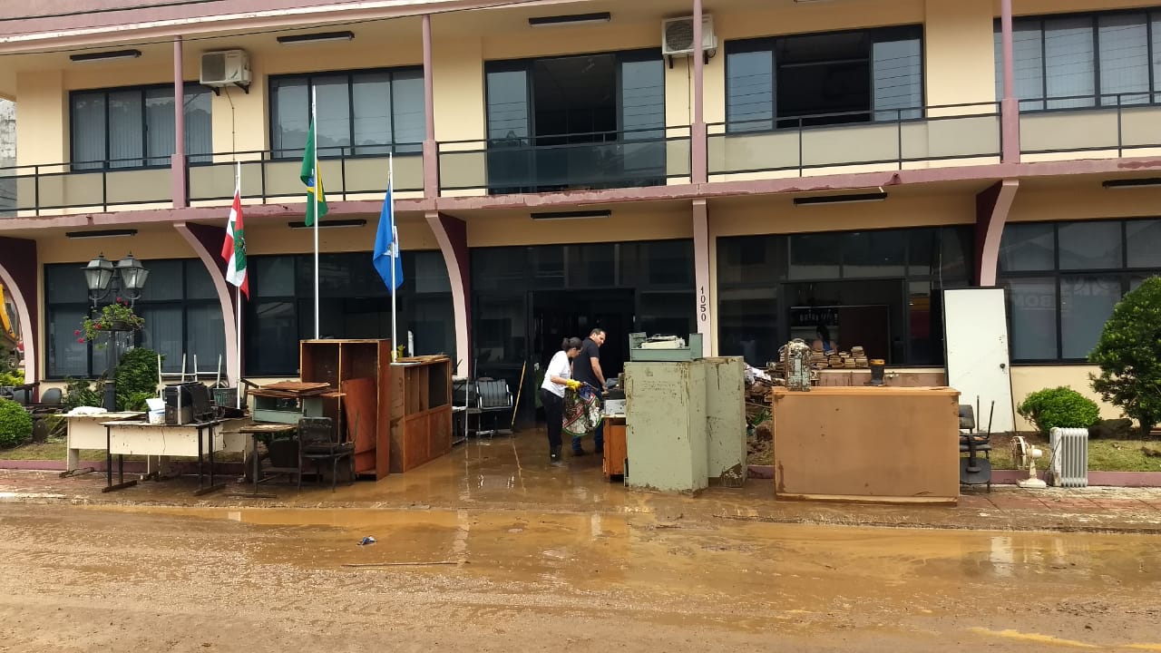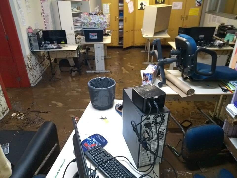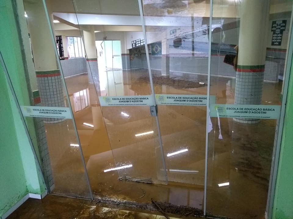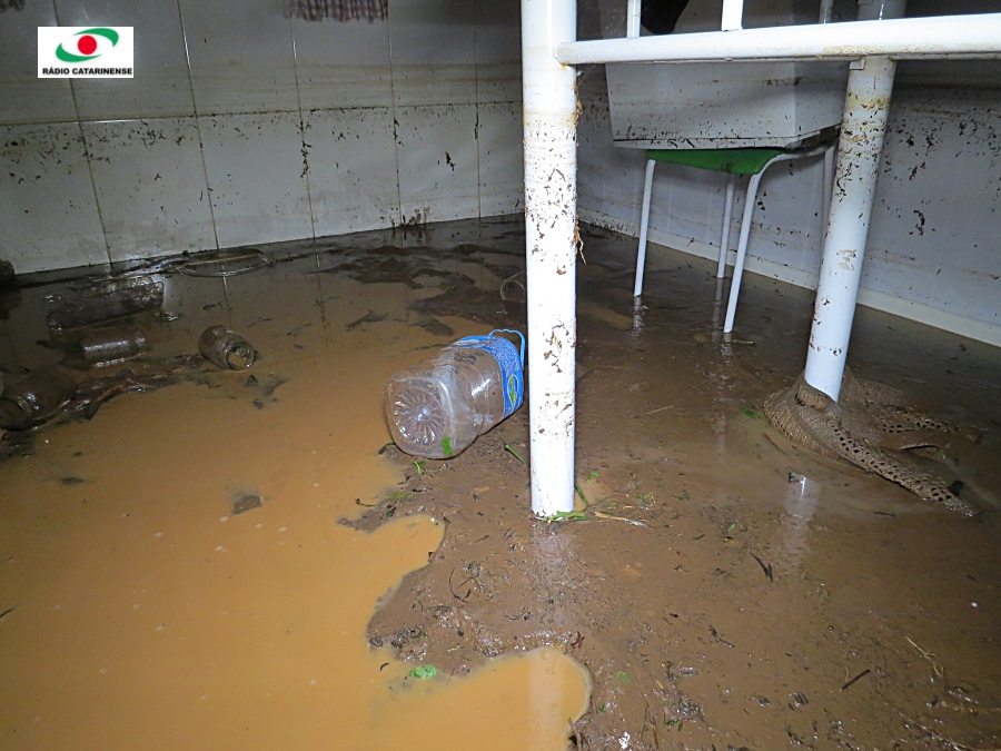 Um dos prédios mais atingidos foi da Escola Básica que funciona também compartilhada com o município. A diretora Maria Papini relatou a Rádio Catarinense que a água começou invadir o estabelecimento logo depois que as crianças foram liberadas, por volta das 17h15. Os professores e funcionários ficaram na escola ilhados até às 21h, no segundo andar, assistindo as cenas de destruição. Foram perdidos documentos, livros e equipamentos de informática. A água arrebentou as portas e chegou a 2 metros de altura dentro do prédio, levando tudo que encontrava pela frente.