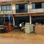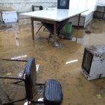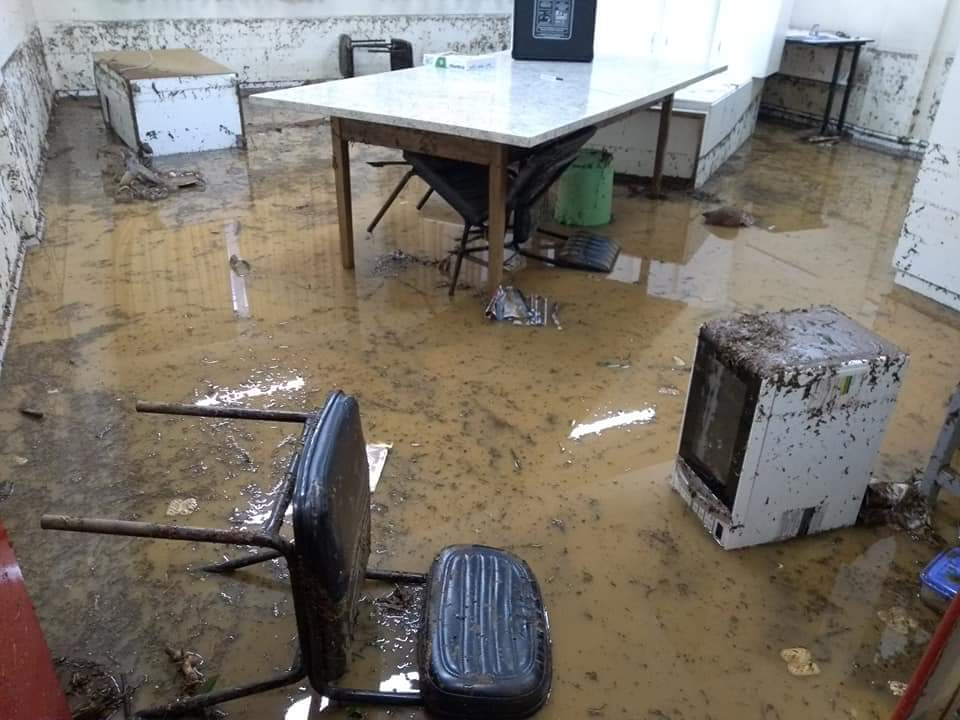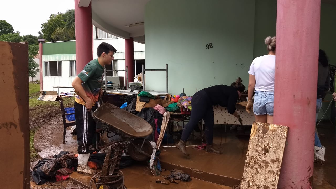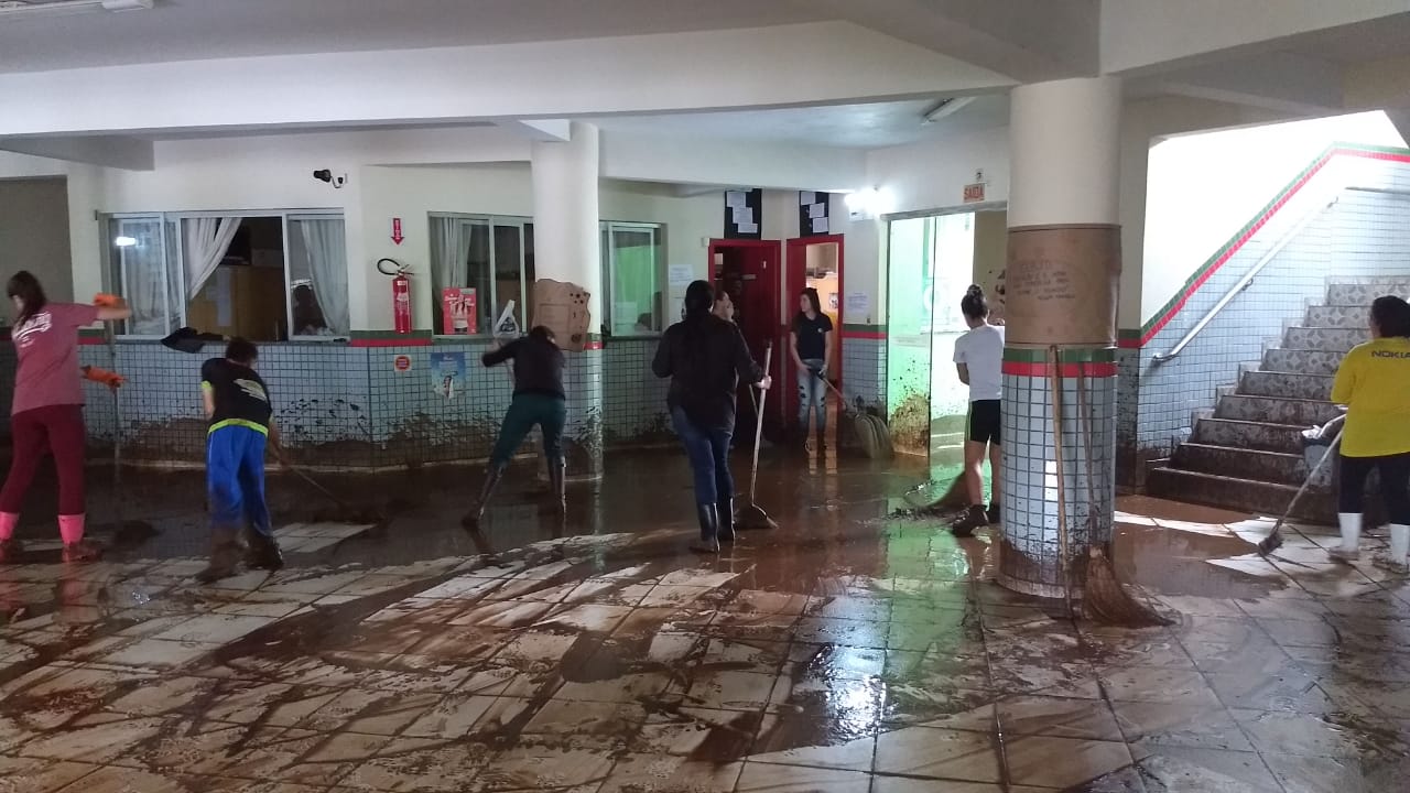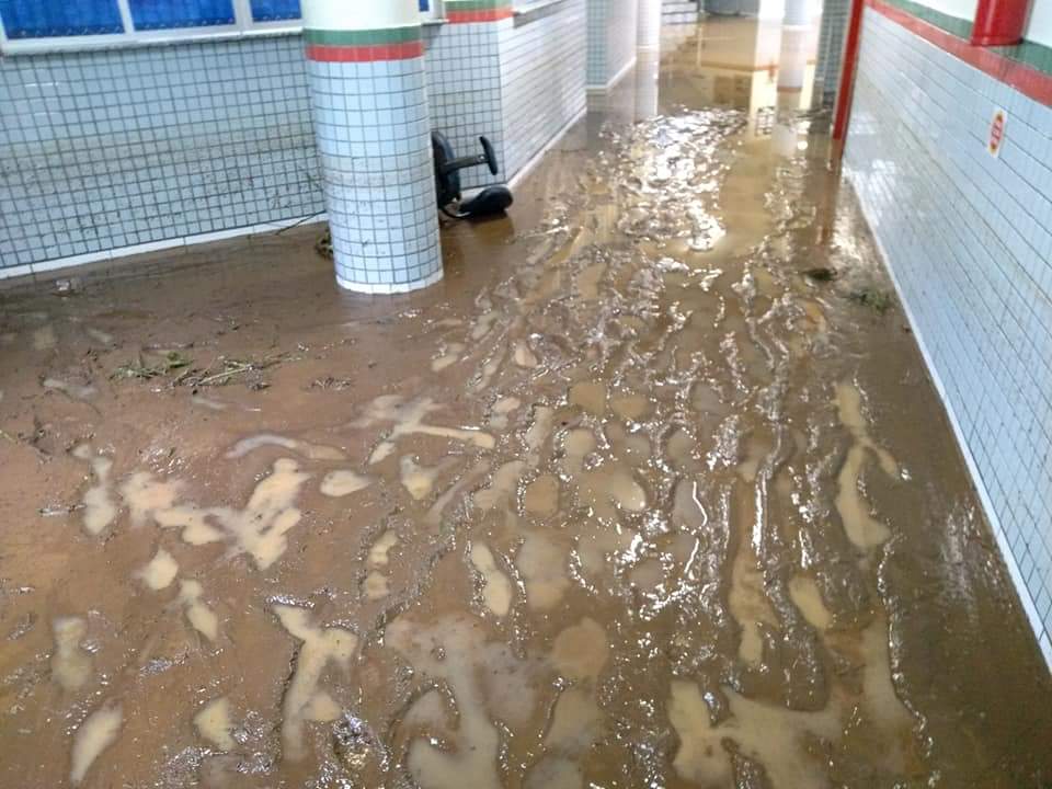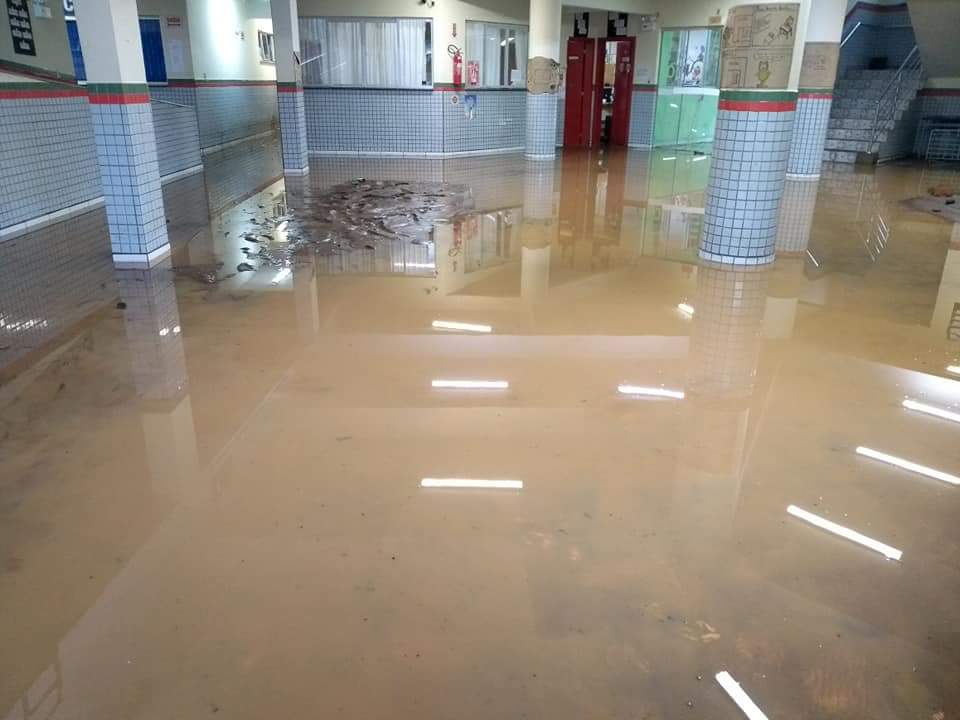 Um dos prédios mais atingidos foi da Escola Básica que funciona também compartilhada com o município. A diretora Maria Papini relatou a Rádio Catarinense que a água começou invadir o estabelecimento logo depois que as crianças foram liberadas, por volta das 17h15. Os professores e funcionários ficaram na escola ilhados até às 21h, no segundo andar, assistindo as cenas de destruição. Foram perdidos documentos, livros e equipamentos de informática. A água arrebentou as portas e chegou a 2 metros de altura dentro do prédio, levando tudo que encontrava pela frente.
