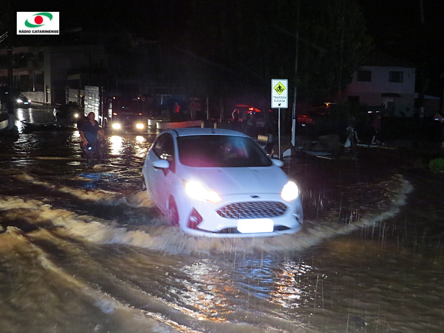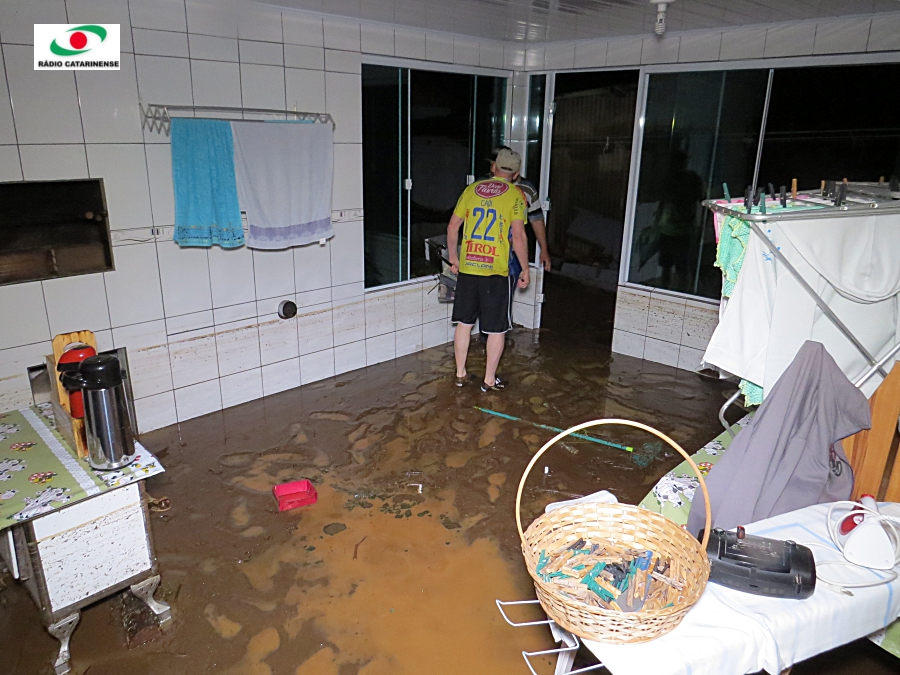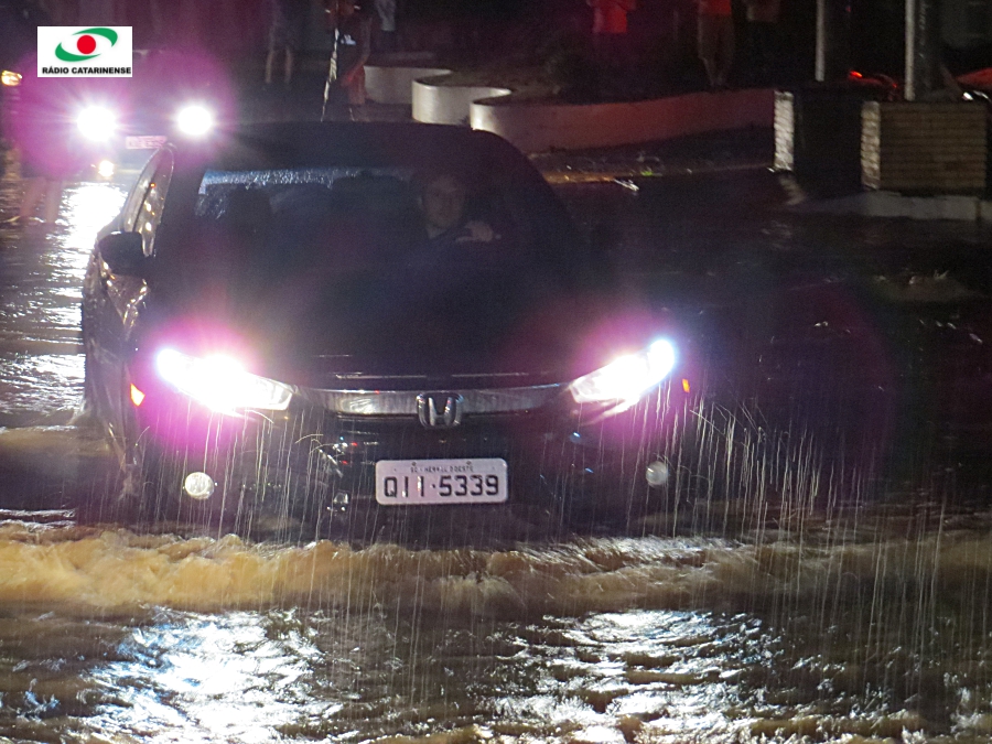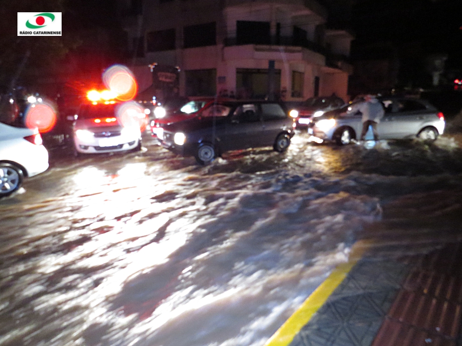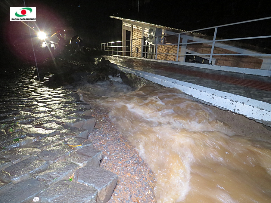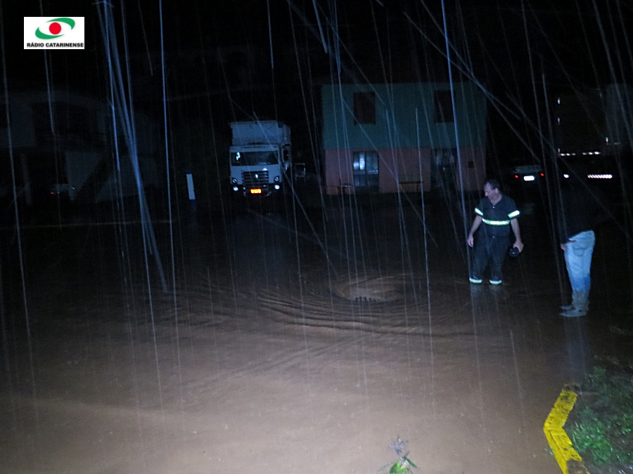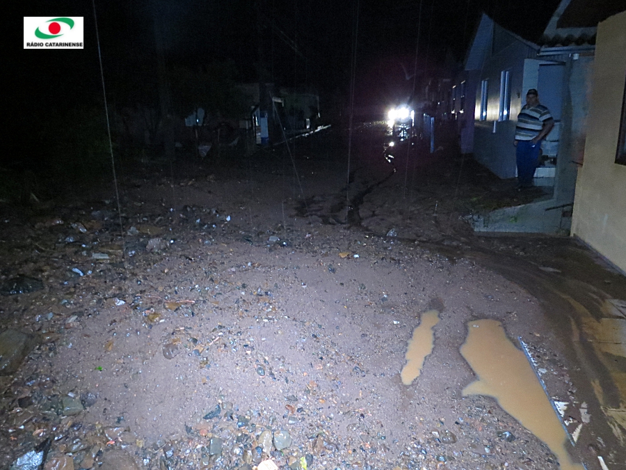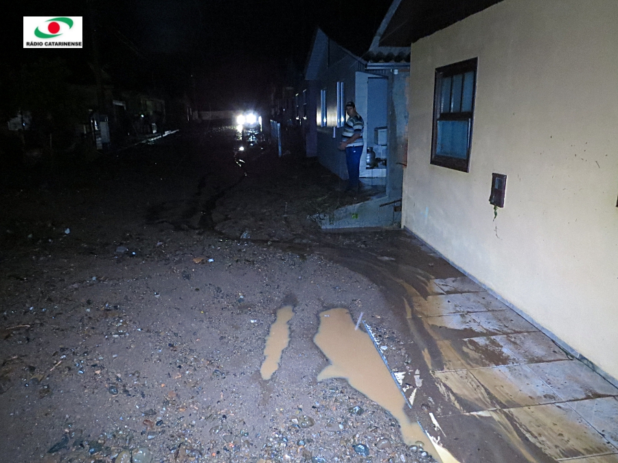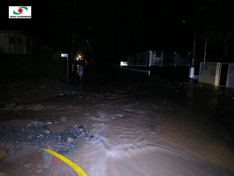 A equipe de jornalismo da Rádio Catarinense se deslocou para o município por volta das 19h. No pórtico de entrada uma imensa fila de veículos em razão da SC, que corta o município, estar interditada em vários pontos. Nossa reportagem estacionou o veículo e saiu a pé pelo acostamento encontrando pelo caminho muita água, bueiro entupido e família com rodo, pá e vassouras na mão tentando limpar ou impedir que a água invadisse as casas. Na região da rodoviária, até próximo da delegacia, se formou um grande lago com a água chegando próximo de 2 metros. Parte da água que descia da região da gruta veio para a rodovia, arrastando pedras de calçamento, terra e entulhos, entupindo bueiros.