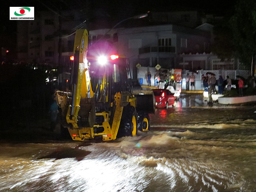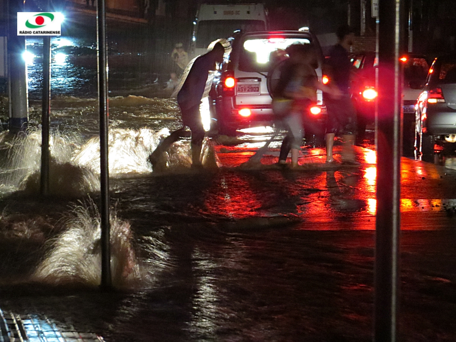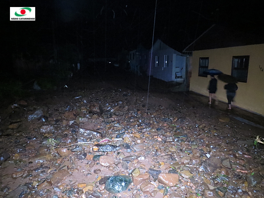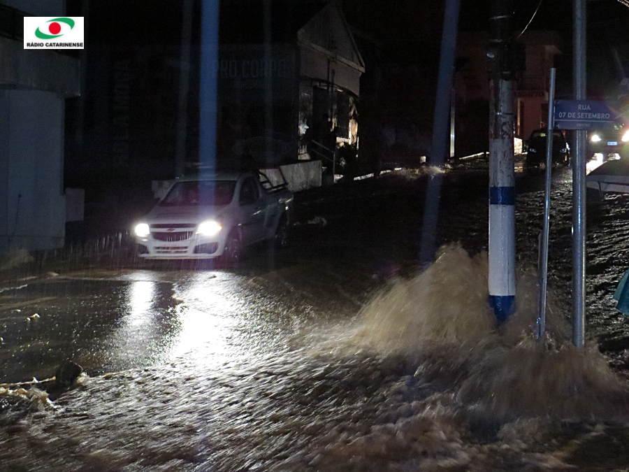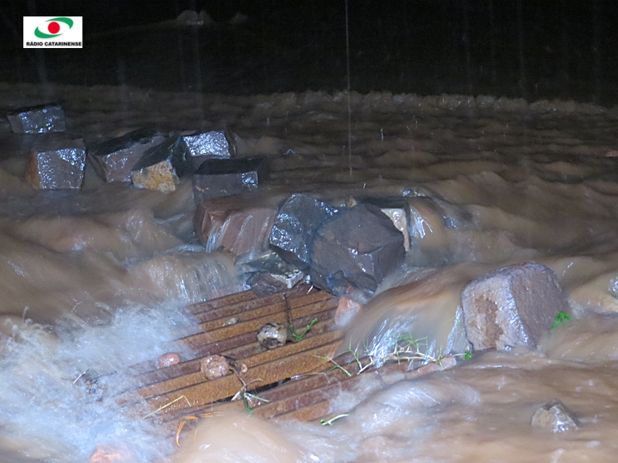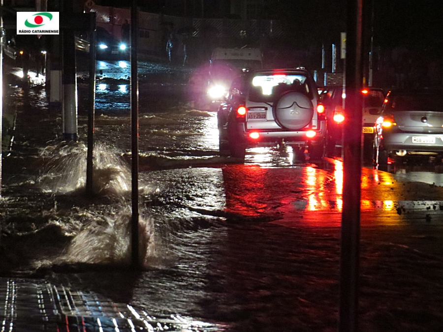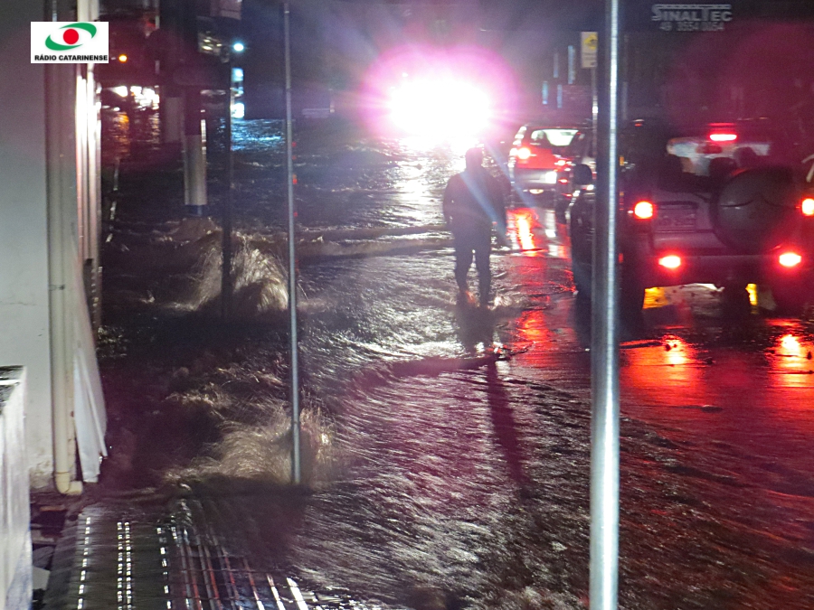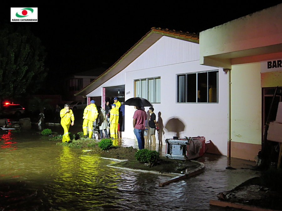 A equipe de jornalismo da Rádio Catarinense se deslocou para o município por volta das 19h. No pórtico de entrada uma imensa fila de veículos em razão da SC, que corta o município, estar interditada em vários pontos. Nossa reportagem estacionou o veículo e saiu a pé pelo acostamento encontrando pelo caminho muita água, bueiro entupido e família com rodo, pá e vassouras na mão tentando limpar ou impedir que a água invadisse as casas. Na região da rodoviária, até próximo da delegacia, se formou um grande lago com a água chegando próximo de 2 metros. Parte da água que descia da região da gruta veio para a rodovia, arrastando pedras de calçamento, terra e entulhos, entupindo bueiros.