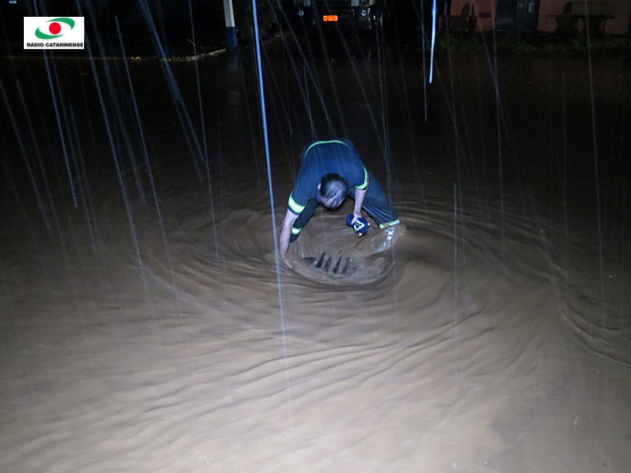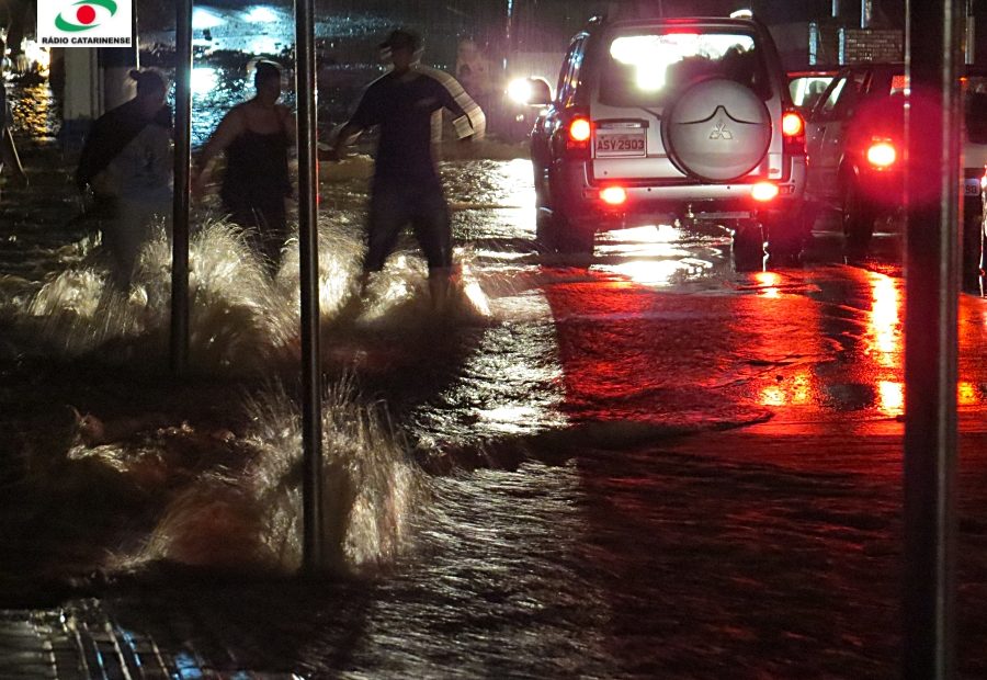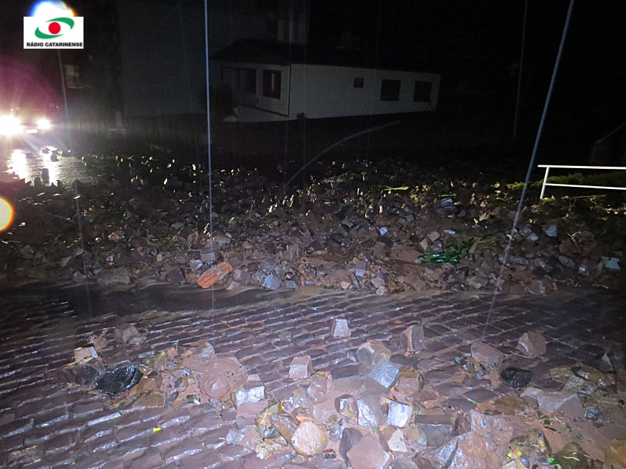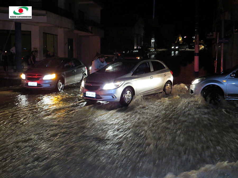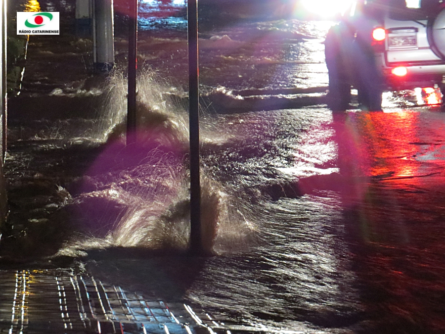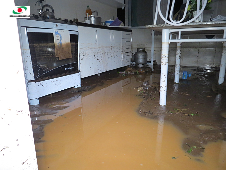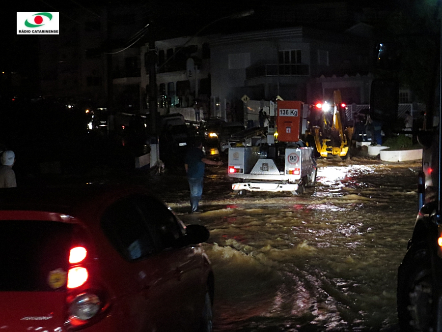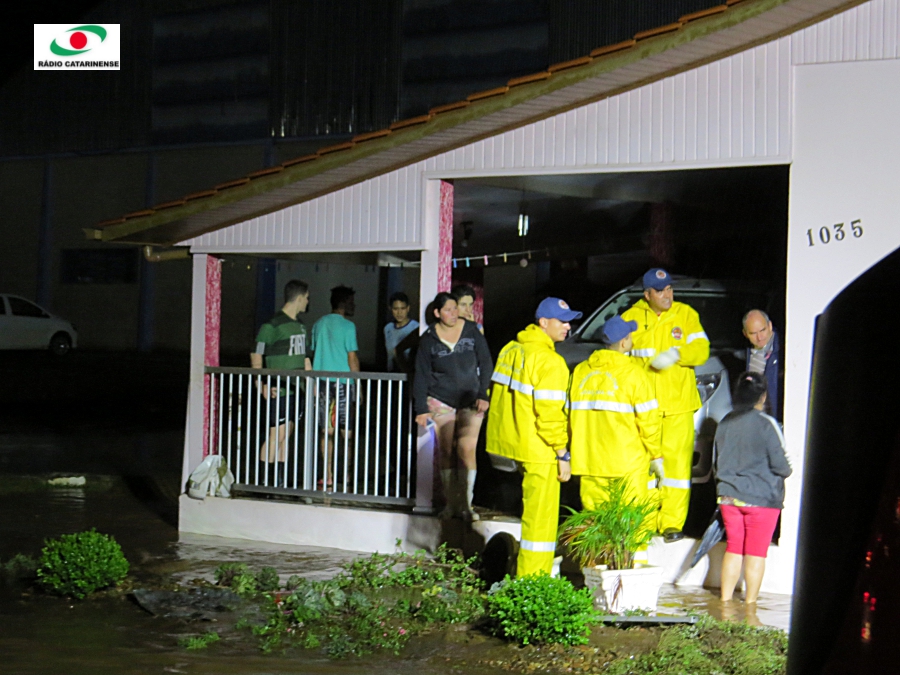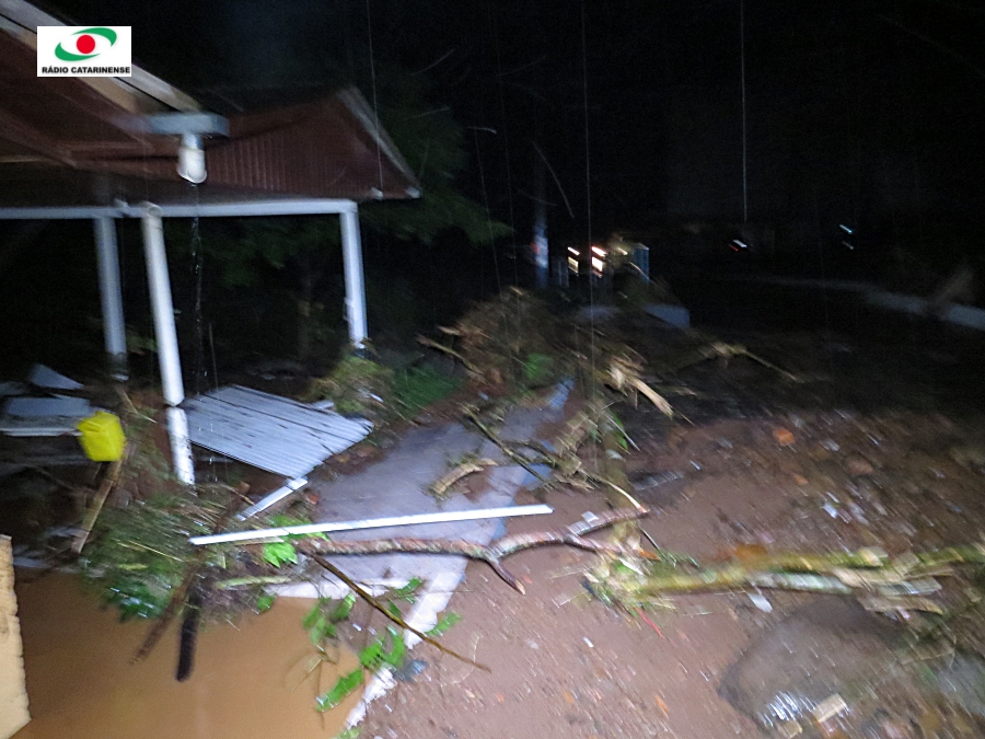 A equipe de jornalismo da Rádio Catarinense se deslocou para o município por volta das 19h. No pórtico de entrada uma imensa fila de veículos em razão da SC, que corta o município, estar interditada em vários pontos. Nossa reportagem estacionou o veículo e saiu a pé pelo acostamento encontrando pelo caminho muita água, bueiro entupido e família com rodo, pá e vassouras na mão tentando limpar ou impedir que a água invadisse as casas. Na região da rodoviária, até próximo da delegacia, se formou um grande lago com a água chegando próximo de 2 metros. Parte da água que descia da região da gruta veio para a rodovia, arrastando pedras de calçamento, terra e entulhos, entupindo bueiros.