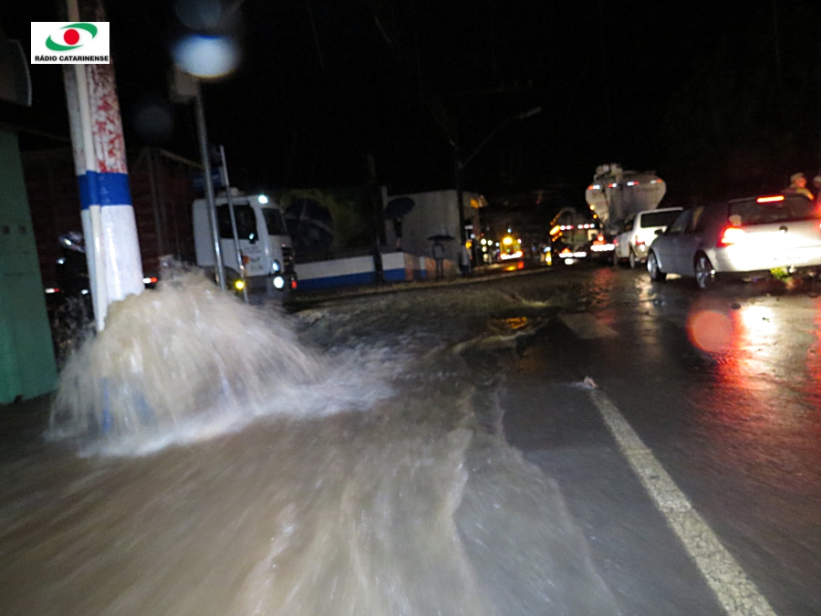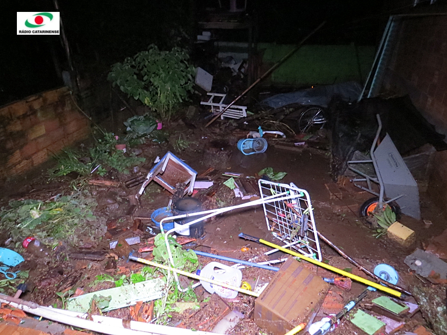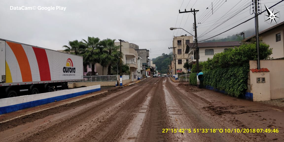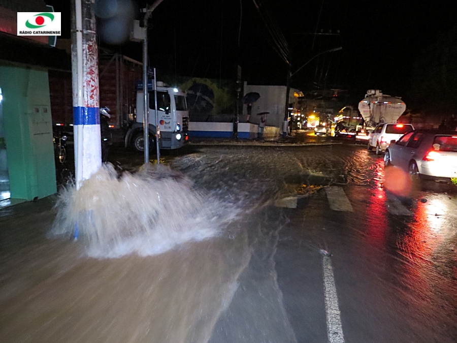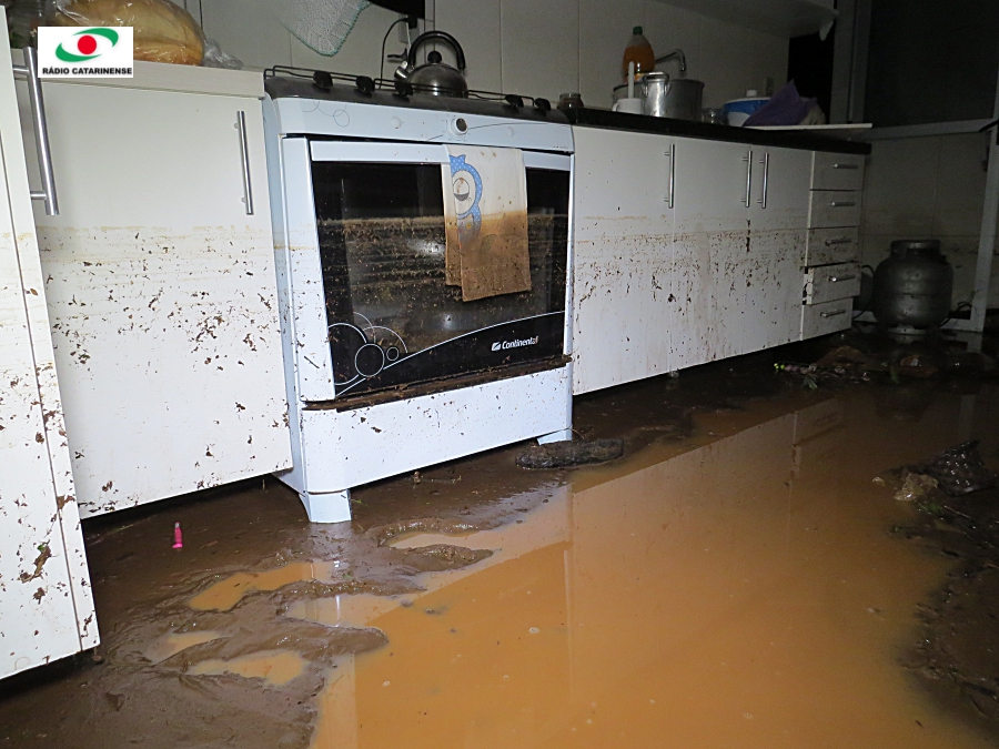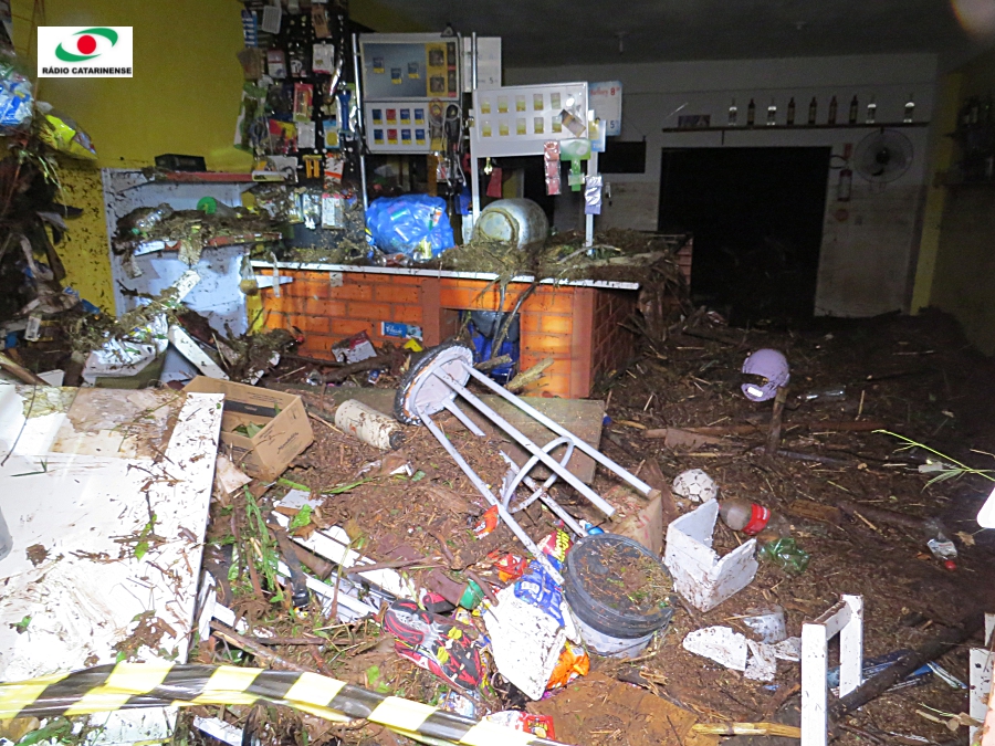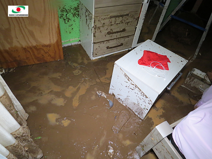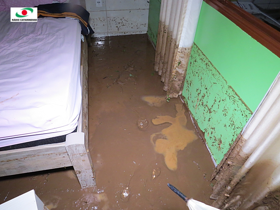 A equipe de jornalismo da Rádio Catarinense se deslocou para o município por volta das 19h. No pórtico de entrada uma imensa fila de veículos em razão da SC, que corta o município, estar interditada em vários pontos. Nossa reportagem estacionou o veículo e saiu a pé pelo acostamento encontrando pelo caminho muita água, bueiro entupido e família com rodo, pá e vassouras na mão tentando limpar ou impedir que a água invadisse as casas. Na região da rodoviária, até próximo da delegacia, se formou um grande lago com a água chegando próximo de 2 metros. Parte da água que descia da região da gruta veio para a rodovia, arrastando pedras de calçamento, terra e entulhos, entupindo bueiros.