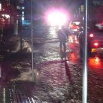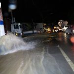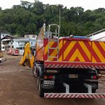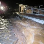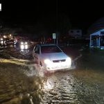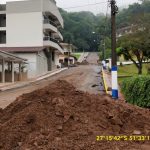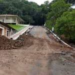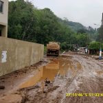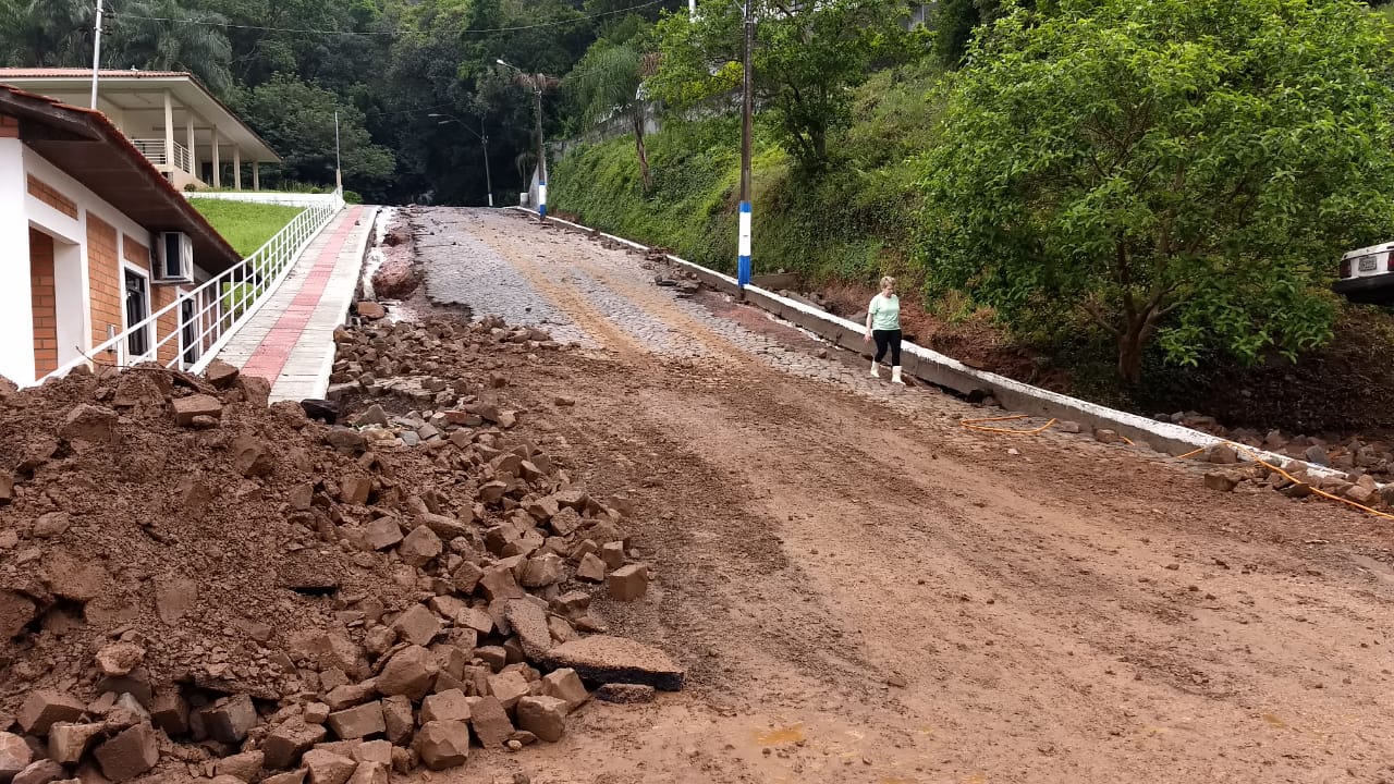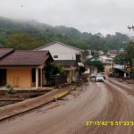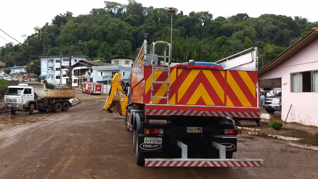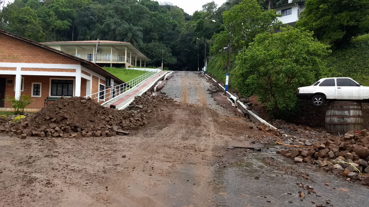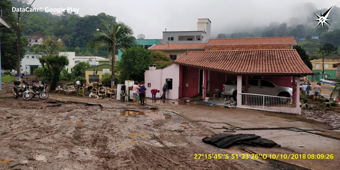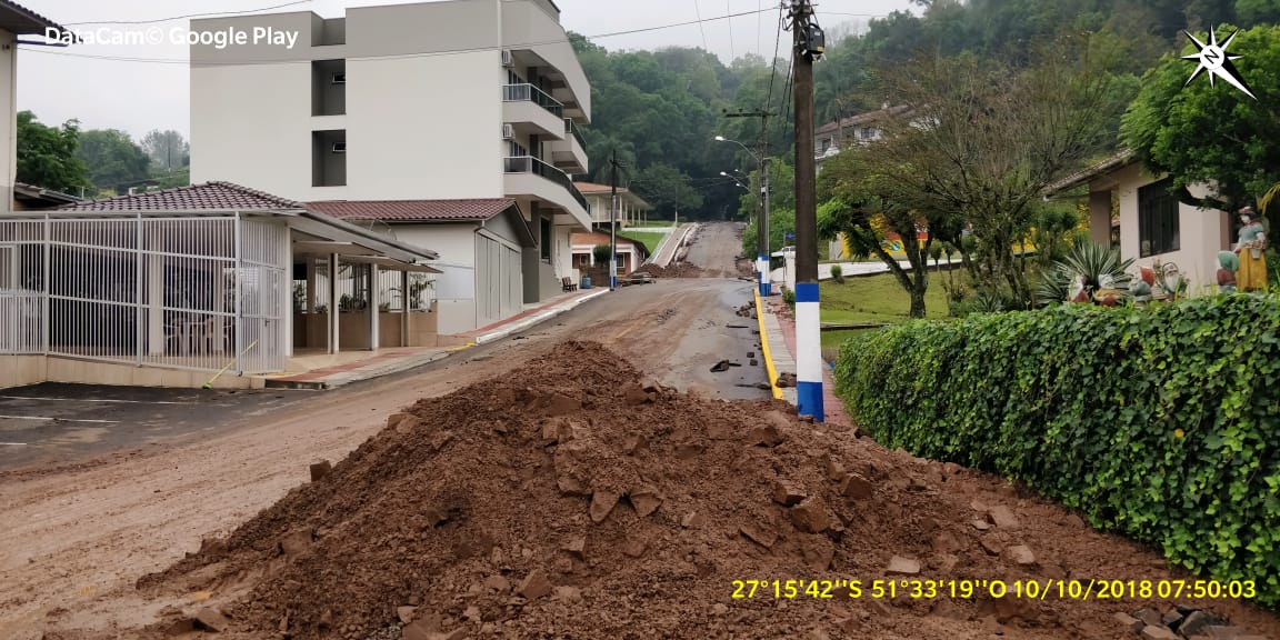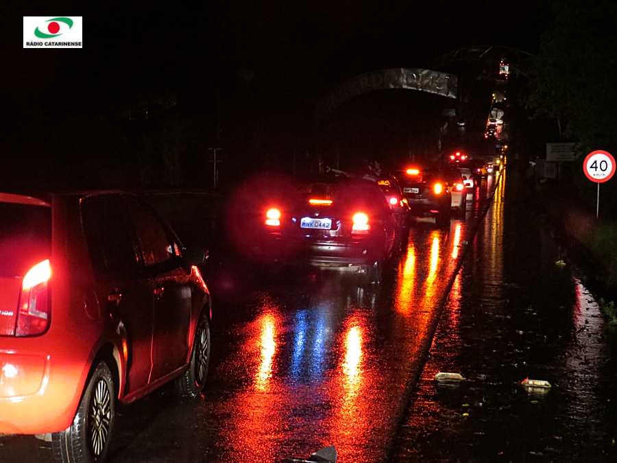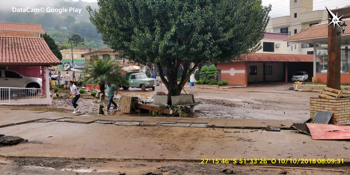 A equipe de jornalismo da Rádio Catarinense se deslocou para o município por volta das 19h. No pórtico de entrada uma imensa fila de veículos em razão da SC, que corta o município, estar interditada em vários pontos. Nossa reportagem estacionou o veículo e saiu a pé pelo acostamento encontrando pelo caminho muita água, bueiro entupido e família com rodo, pá e vassouras na mão tentando limpar ou impedir que a água invadisse as casas. Na região da rodoviária, até próximo da delegacia, se formou um grande lago com a água chegando próximo de 2 metros. Parte da água que descia da região da gruta veio para a rodovia, arrastando pedras de calçamento, terra e entulhos, entupindo bueiros.