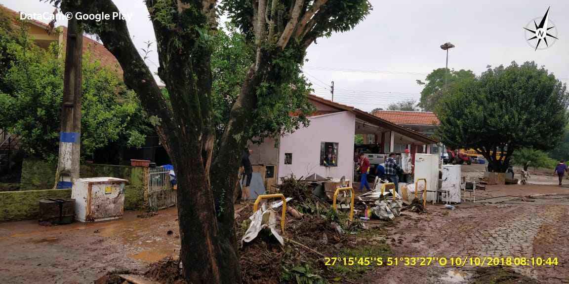Casas alagadas, lojas tomadas por lama, ruas transformadas em rios, calçamentos arrancados, queda de barreiras, árvores caídas, bueiros entupidos e famílias desesperadas. A pequena e pacata cidade de Lacerdópolis, vizinha de Joaçaba, há menos de 20km, viveu no final da tarde desta terça-feira (09) uma situação de calamidade pública. A chuva que chegou por volta das 17h, de forma torrencial, e se estendeu até às 21h, provocou uma das maiores enxurradas dos últimos anos. “Eu morro aqui há mais de 50 anos e nunca vi nada igual a isso” relatou um senhor que assistia a movimentação embaixo de um guarda-chuva com olhos assustados.