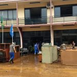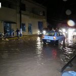 Mais adiante o ponto mais crítico. Na esquina principal do município, que dá acesso a prefeitura, um rio com uma corredeira forte empurrando tudo que vinha pela frente. Somente depois das 20h que os veículos conseguiam passar com alguma dificuldade. A água seguia e nas proximidades da prefeitura formava-se um novo lago, invadindo casas e lojas.