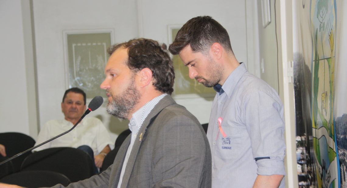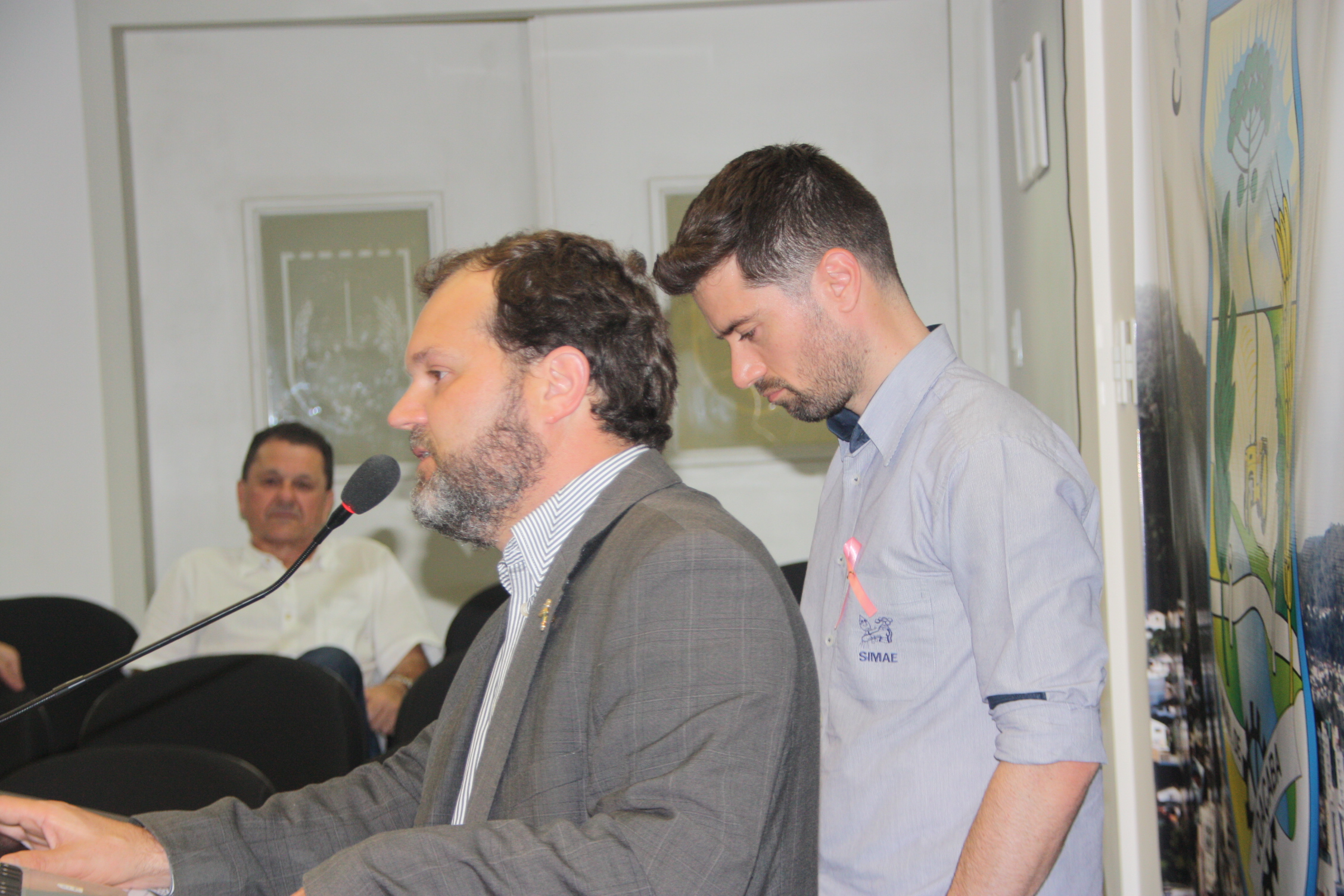Simae: o diretor presidente do Simae, Paulo Cesar Lamin também esteve na tribuna para falar sobre as ações da instituição no âmbito da preservação das nascentes e da qualidade das águas fluviais do município de Joaçaba e da região. Lamin apresentou dados sobre índices de cobertura de água e esgoto, correta utilização da rede coletora de esgoto, combate a perdas de água e demais ações ambientais.