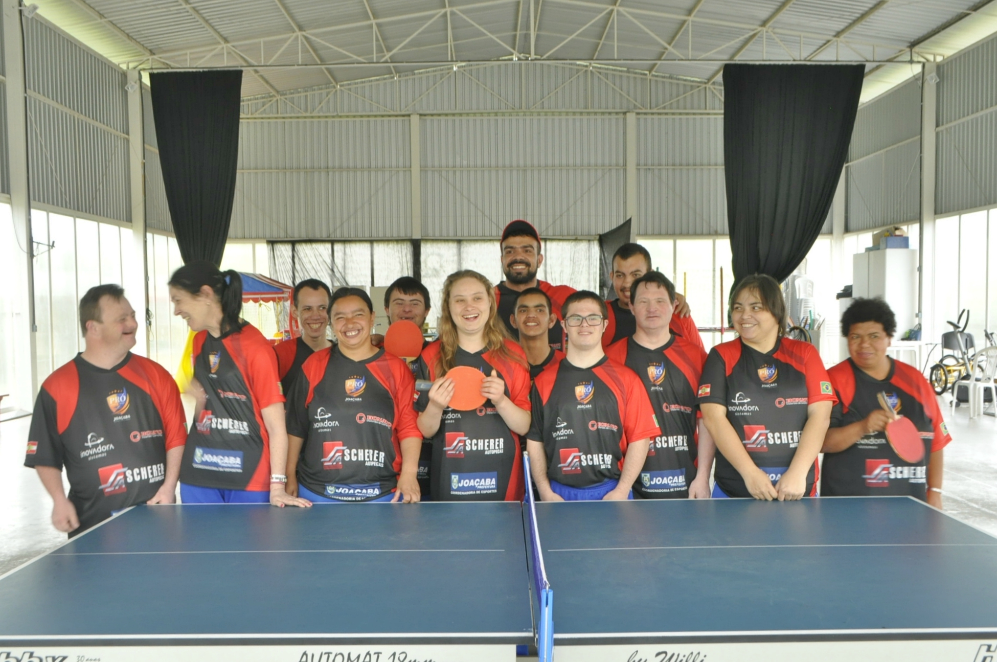 A Associação Pró Tênis de Mesa fez a entrega de camisetas a treze alunos da Escola Especial Frei Bruno / APAE Joaçaba. O ato foi acompanhado por patrocinadores e professores da instituição. Há dois anos os alunos participam das aulas do projeto social, por meio de aulas gratuitas da modalidade desenvolvidas pelo professor Marlon Spindola, no período vespertino das quartas-feiras.