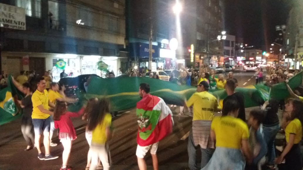 O público saiu as ruas em Joaçaba para comemorar a vitória de Jair Bolsonaro (PSL) à presidência da república. Assim que o resultado foi anunciado iniciou a queima de fogos e uma grande carreata pela área central de Joaçaba. Uma festa que entrou noite adentro com o público comemorando muito a vitória. Um barulho ensurdecedor que há muito tempo não se via. A maior concentração de público aconteceu na praça da catedral em frente a prefeitura.Confira as fotos.