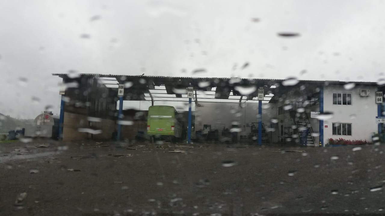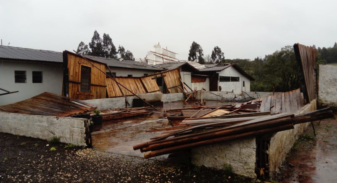 Vendaval derruba um barracão, destelha outro e arranca placas em Ponte Serrada