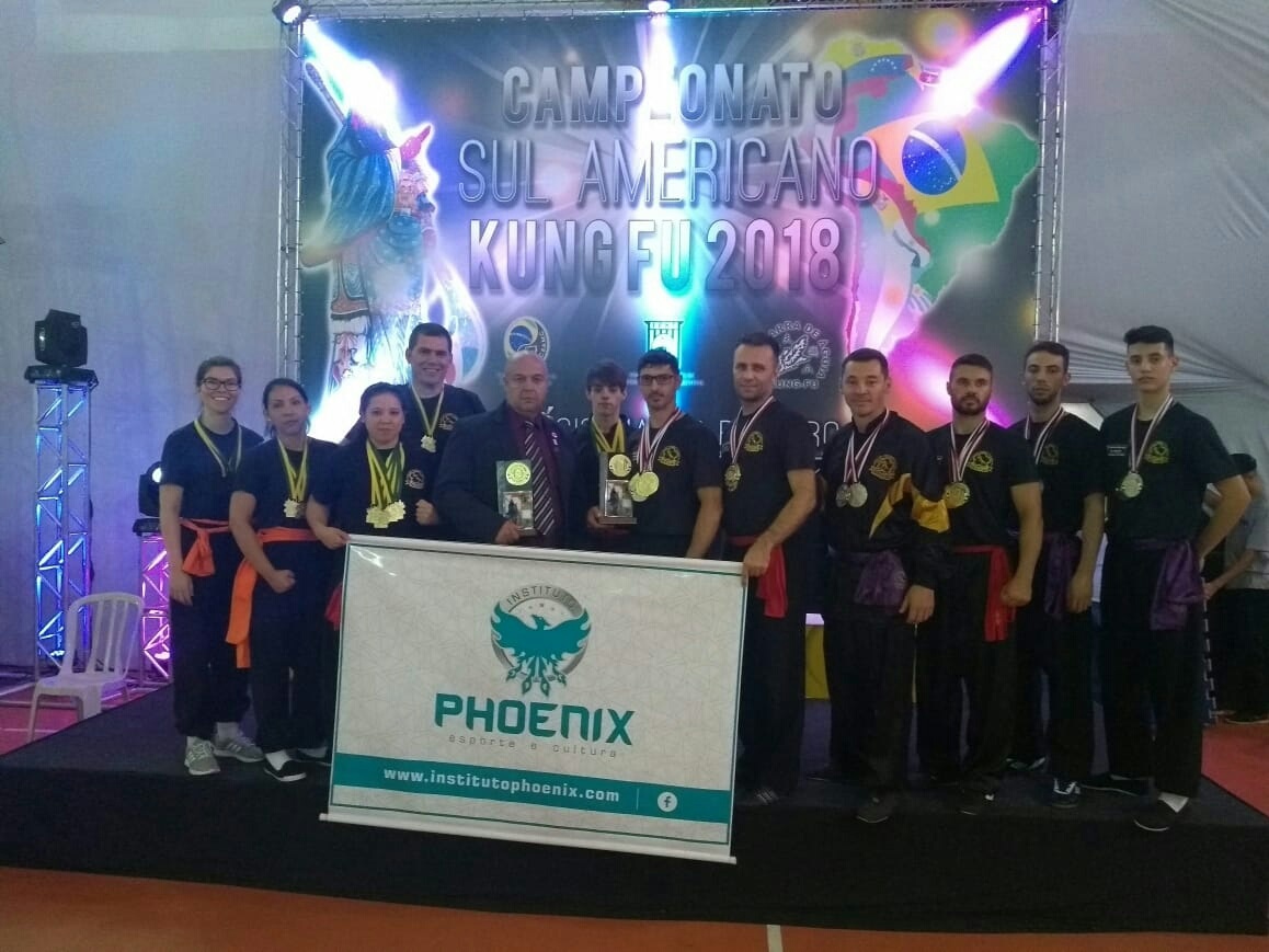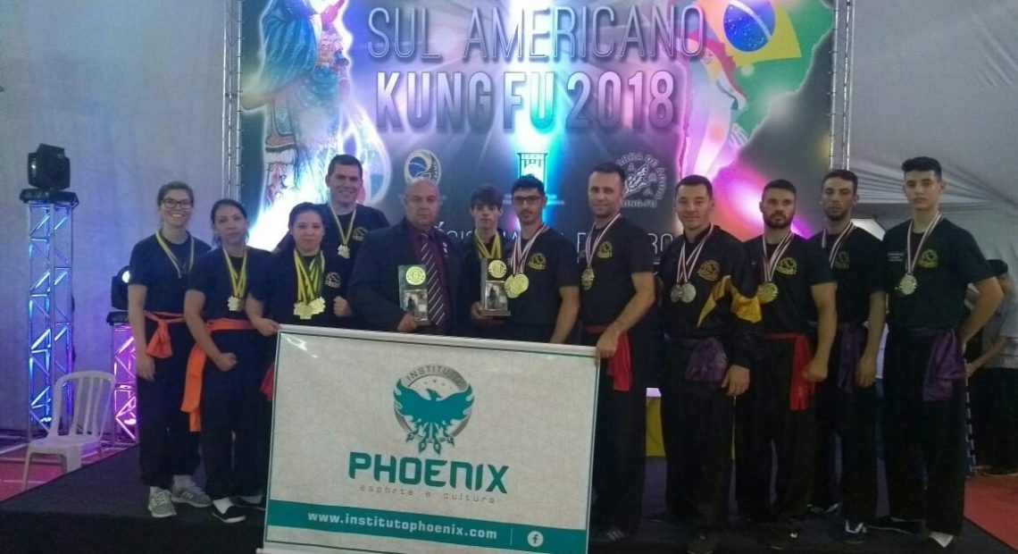 No último domingo (18), 11 atletas de Joaçaba estiveram participando do Campeonato Sul Americano e Inter Estados de kung-fu, realizado em São Paulo, no complexo do Ibirapuera, Ginásio Mauro Pinheiro. O evento, promovido pela Confederação Brasileira de Artes Marciais Chinesas, contou com a participação de atletas de alto nível, representantes de grandes Mestres de kung-fu, mostrando a grandeza e riqueza dessa nobre Arte Marcial, que além de técnicas de mãos vazias, também trabalha com armas tradicionais chinesas, como: Bastão, Facão Chinês, Arma articulada (Nunchaco), Espada, Lança e outras.
