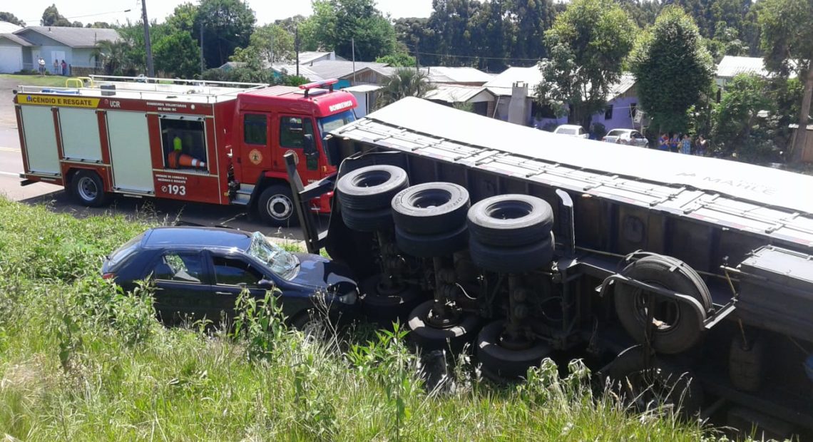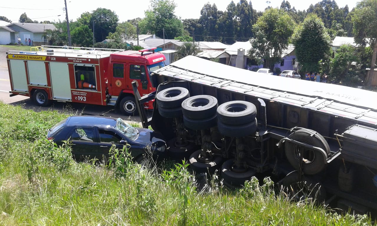 Duas pessoas ficaram feridas em acidente na tarde desta quinta-feira (22) no km 65 da BR-153 em Irani, nas proximidades do Posto Colpani. O fato foi registrado por volta das 14h quando os bombeiros voluntários foram acionados e constataram no local o acidente envolvendo uma carreta com placas de São Mateus do Sul/PR e um Fiat Palio com placas de Irani. Conforme as informações, a carreta acabou tombando fora da pista e o automóvel teria colidido na sequência no veículo de carga, também fora da pista.