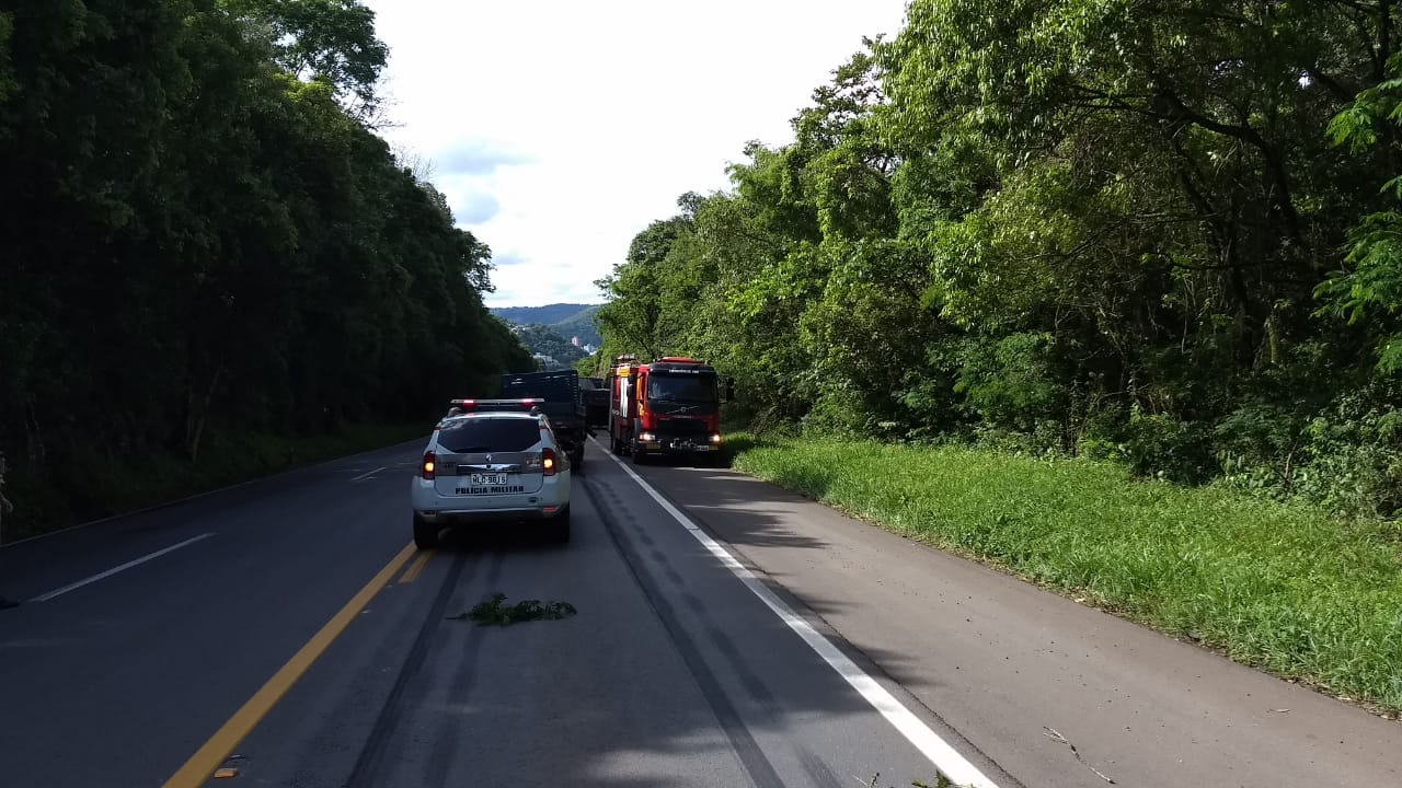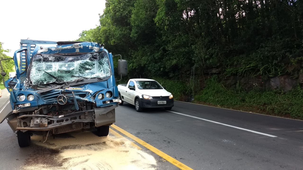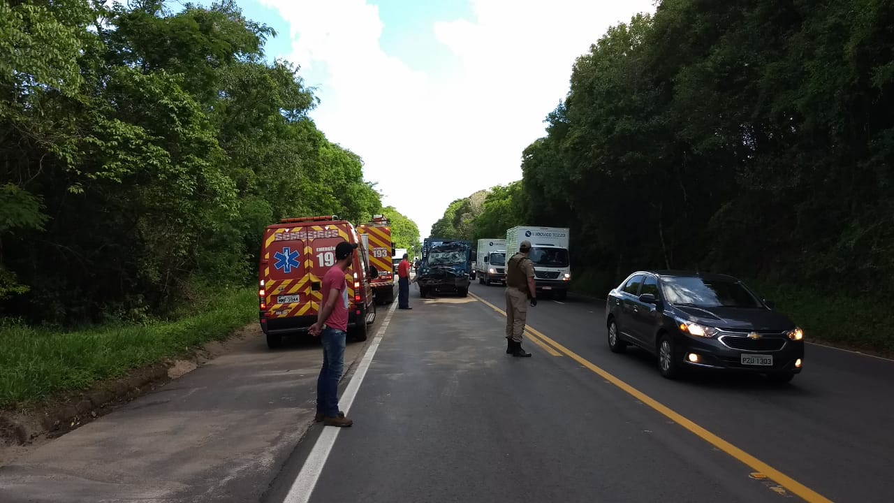 Colisão de caminhões na BR-282 em Herval d’Oeste