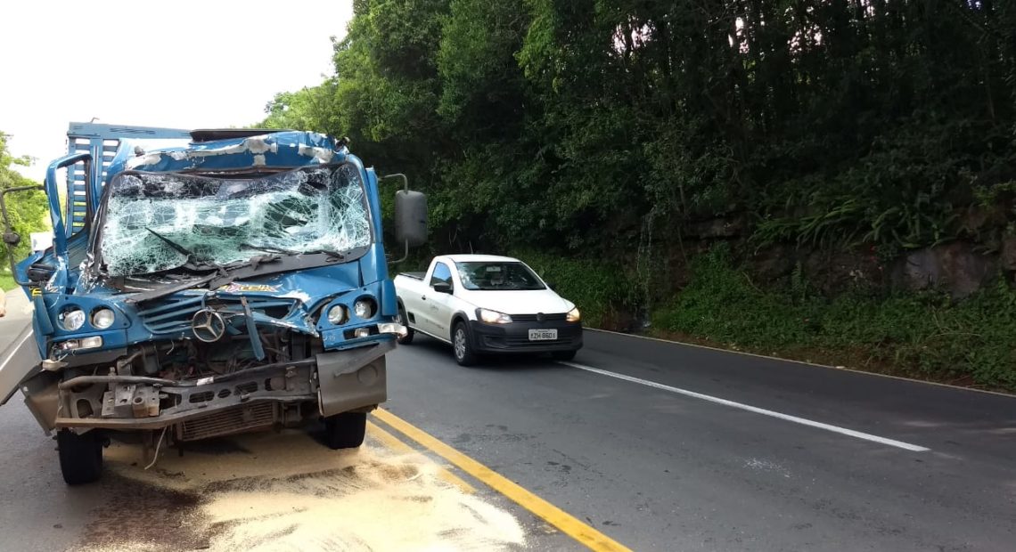 Dois caminhões de envolveram num acidente na BR-282 em Herval d’Oeste na tarde desta quinta-feira (01). Foi uma colisão traseira. O acidente aconteceu por volta das 15h próximo ao Ferro Velho Velho Boa Vista. O motorista do caminhão de Irani que foi atingido, Felipe Weber, que descia a serra, relatou que o outro caminhão estava sem freio. Ele teve a cabine praticamente destruída. O motorista, que dirigia o caminhão com placas de Chapecó, foi socorrido e levado ao HUST com ferimentos.