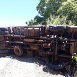 Motorista fica ferido após caminhão tombar na estrada de acesso à Nova Petrópolis