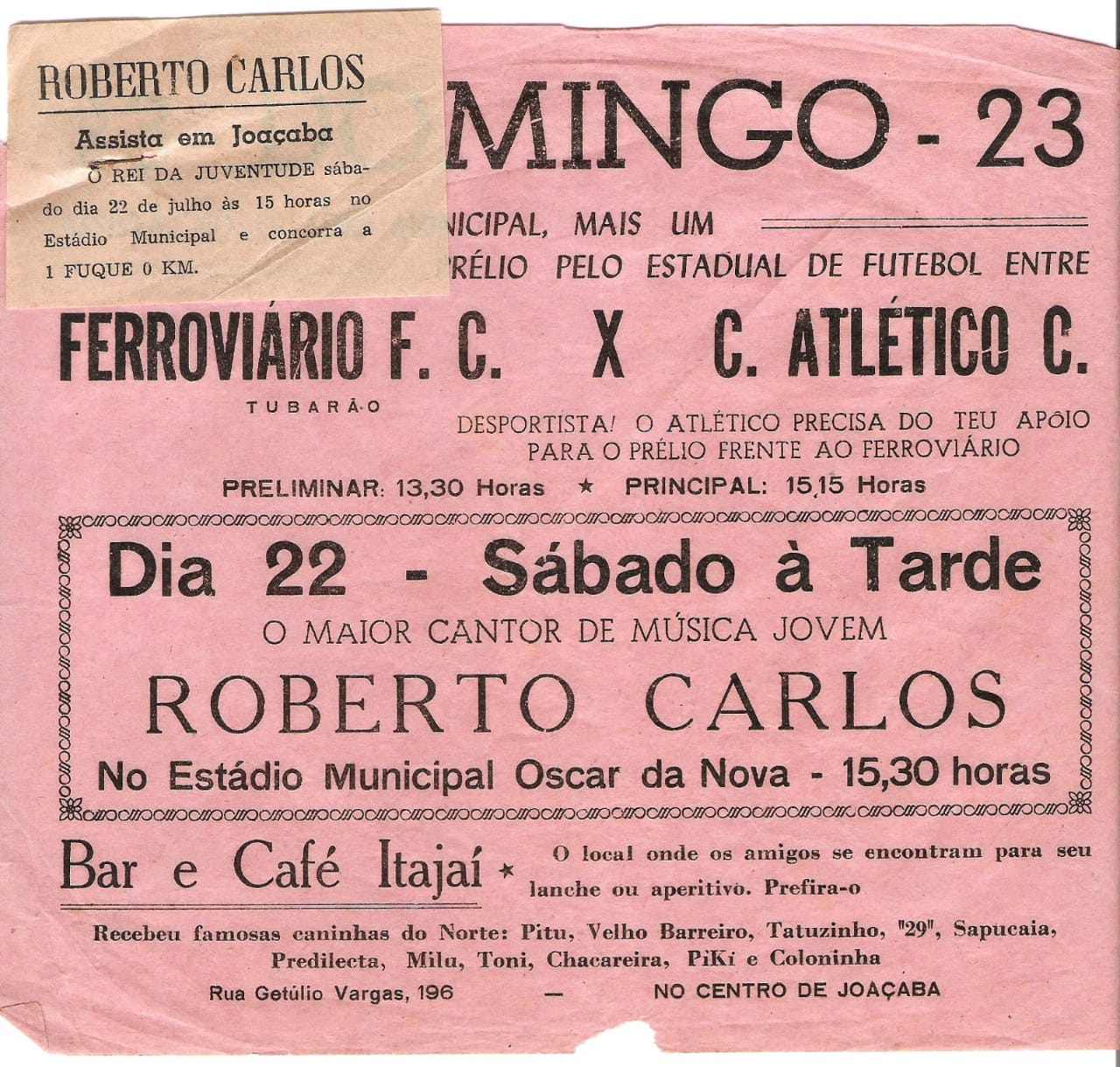 Roberto Carlos esteve duas vezes em Joaçaba. Em 1967 cantou no estádio Oscar da Nova,