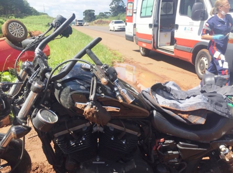Um motociclista ficou ferido após uma colisão contra uma VW/Saveiro por volta das 11h desta quinta-feira (27) na BR-282, em Campos Novos. Luiz Felipe Reck, de 30 anos, conduzia a moto Harley Davidson com placa de Florianópolis, que se chocou com a caminhonete de Campos Novos nas proximidades do trevo de acesso ao município de Vargem. Com o impacto, a Saveiro capotou fora da pista.