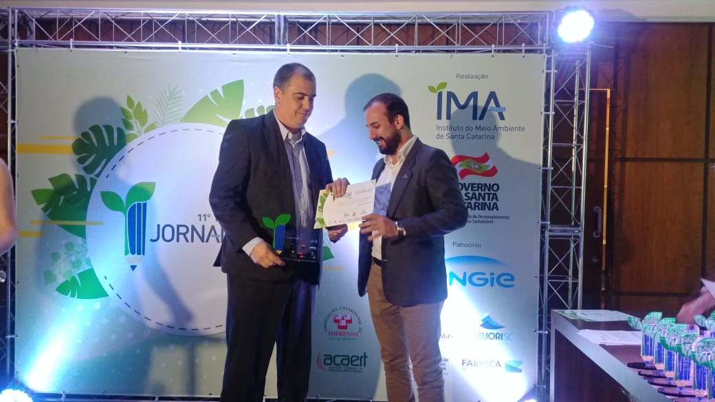 A Rádio Catarinense de Joaçaba é mais uma vez destaque em Santa Catarina em um prêmio de Jornalismo. Depois do Prêmio FIESC, conquistado no final de novembro, agora foi a vez do prêmio IMA (ex FATMA) de jornalismo Ambiental. A reportagem de autoria e produção do jornalista Marcelo Santos, que mostra a problemática do descarte das lâmpadas fluorescentes, com locução de Marcos Valnei e edição de áudio de Kleiton Silva, venceu a etapa regional e também estadual de um dos prêmios mais importantes de jornalismo. Ela chegou a final junto com outros trabalhos selecionados pela comissão julgadora e foi classificada como campeã. A solenidade de entrega da premiação aconteceu no auditório do Hotel Majestic em Florianópolis.