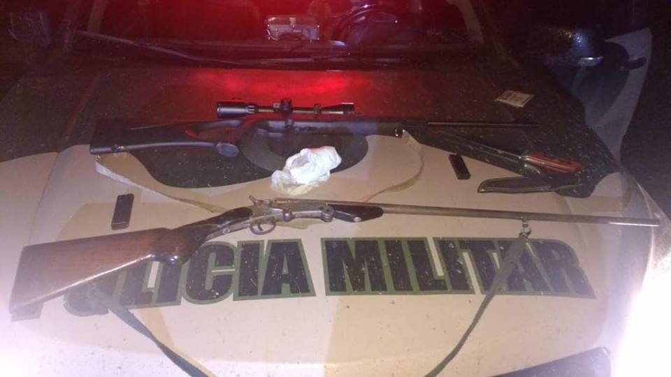 Segundo as informações, a guarnição fazia o patrulhamento quando abordou, por volta das 22h45min na Linha Caxambu, um Gol ocupado por dois homens. No veículo foram encontrados no porta-malas um rifle calibre 22, uma espingarda calibre 36, munições e uma capivara abatida.