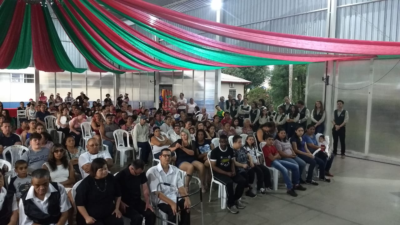 A APAE de Joaçaba realizou na noite desta terça-feira (18) a festa de NATAL 2018. Um evento que marcou o encerramento das atividades este ano e que faz parte do projeto “Superando Limites pela Arte”, projeto este com com o incentivo fiscal e o apoio do Ministério da Cultura e de diversas empresas. As apresentações dos alunos foram abertas pelo Coral da Celulose Irani que esta em atividade desde o ano de 2012 que deu um brilho especial ao evento com músicas natalinas. Na sequência o público acompanhou as apresentações dos grupos de dança, coral, banda e peças de teatro. A festa também contou com a chegada do Papai Noel com a distribuição de cestas de Natal.