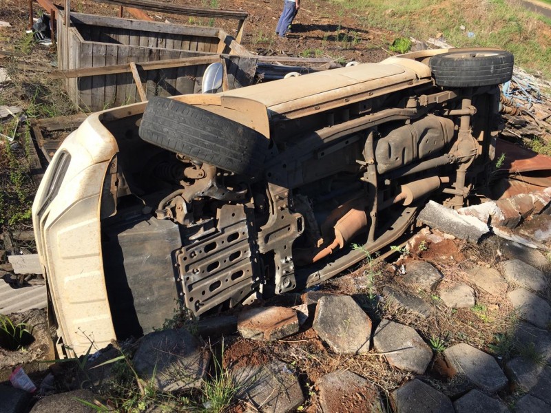 Caminhonete é arremessada para fora da pista após colisão em Catanduvas