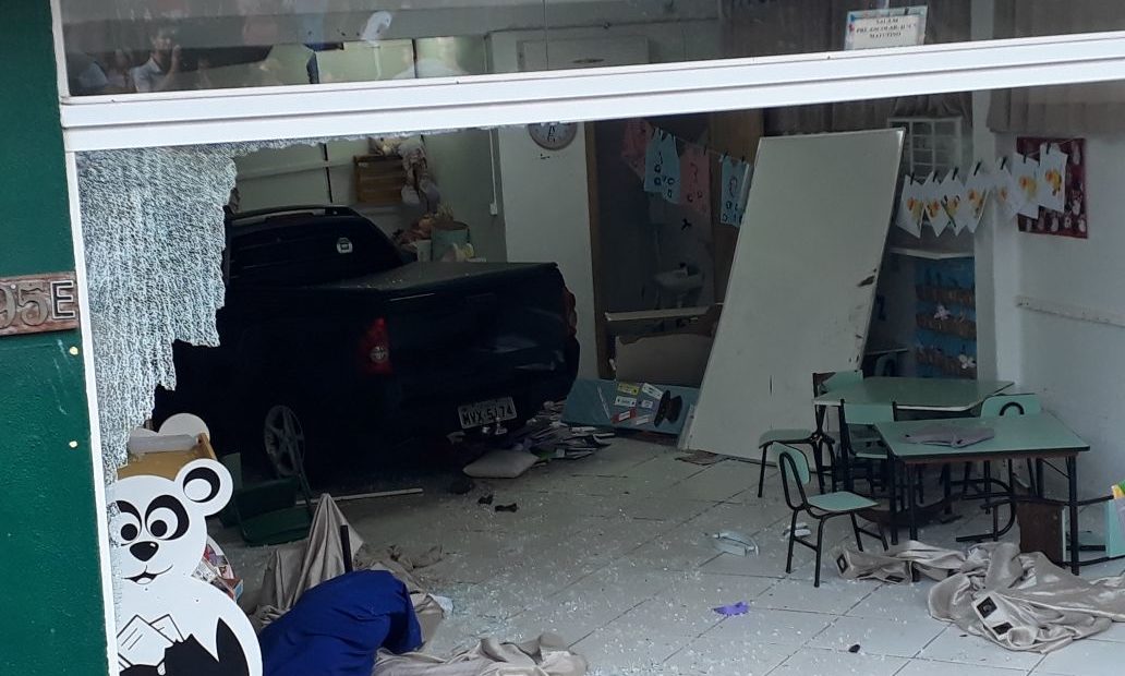 Momento em que o veículo invadiu a creche