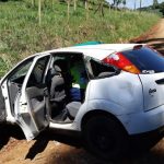 O condutor relatou que o automóvel derrapou nas pedras soltas, ocasionando o acidente.