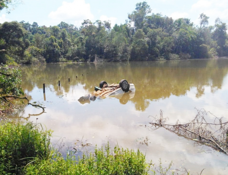 Um Prisma com placas de Cascavel (PR) capotou em um açude após o motorista perder o controle da direção no final da manhã do último sábado (9) na BR-470, próximo ao trevo de acesso à Brunópolis.