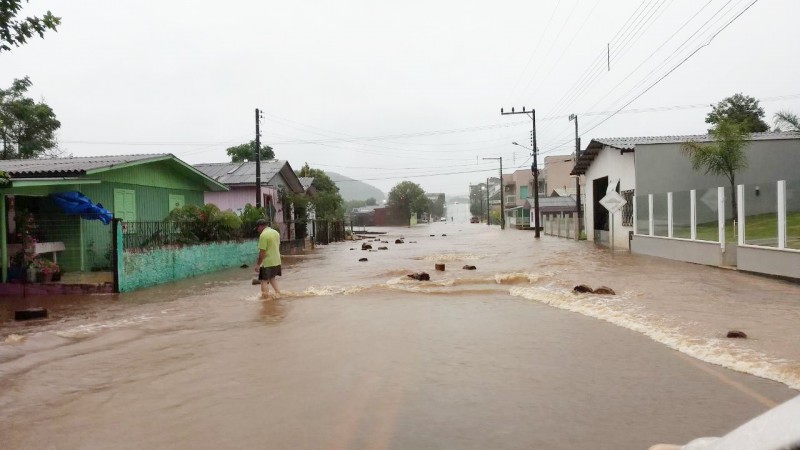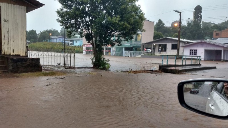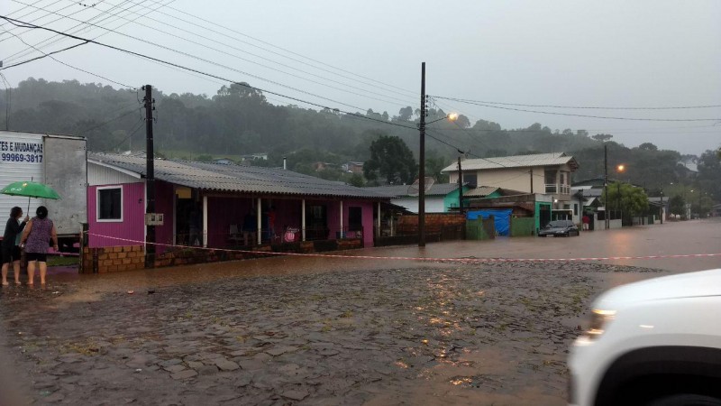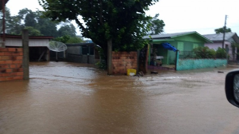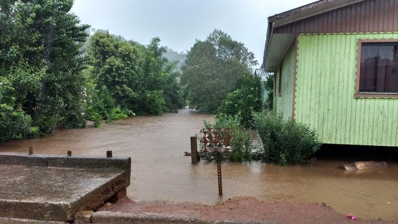 A forte chuva ao longo da madrugada desta sexta-feira (15) já provocou alagamentos em alguns pontos no município de Ponte Serrada. A área mais atingida fica no Bairro São Sebastião, onde o Rio Ponte Serrada já saiu da calha e a água invadiu residências.