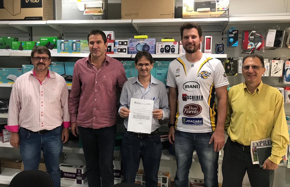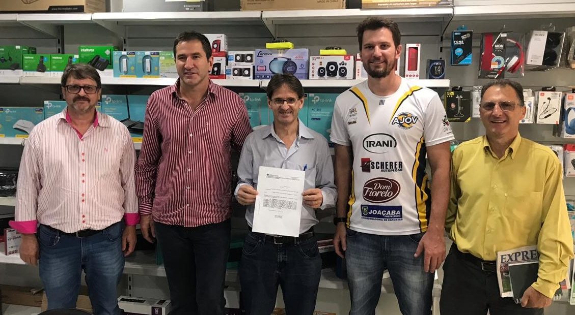 O deputado estadual Neodi Saretta esteve visitando a região meio oeste e entregando em mãos da diretoria e comissão técnica da Associação Joaçabense de Voleibol (AJOV) sua indicação de moção de aplauso para a entidade.