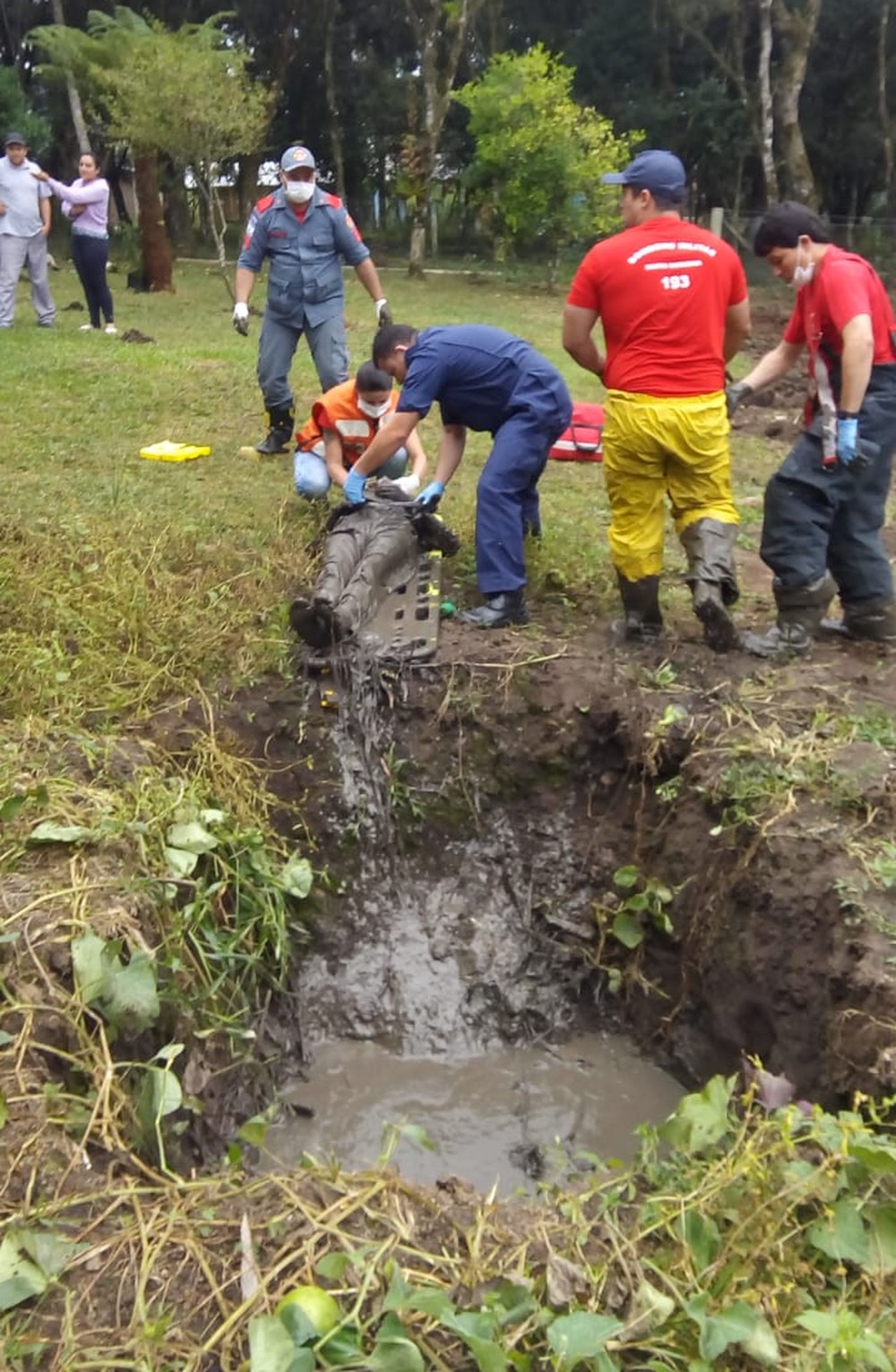 Idoso é resgatado após passar noite dentro de fossa em SC