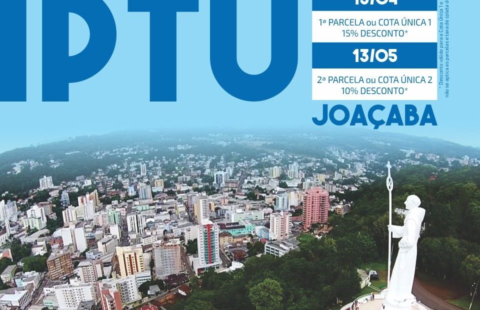 A partir da próxima segunda-feira (11) os contribuintes do Município de Joaçaba já poderão imprimir o carnê do IPTU – Imposto Predial Territorial Urbano 2019. Os boletos para o pagamento serão disponibilizados no site da prefeitura. Para imprimi-los basta acessar o site da Prefeitura de Joaçaba, no link ttps://www.joacaba.sc.gov.br/portalcidadao/index/detalhes/codMapaItem/12959/codServico/897.
