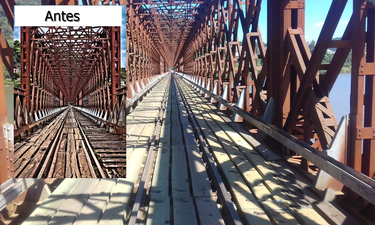 A centenária ponte rodoferroviária localizada no lago do Rio Uruguai entre os municípios de Marcelino Ramos/RS e Alto Bela Vista/SC passou por uma grande reforma do assoalho de madeira. A obra que durou cerca de 8 meses foi resultado de uma ação civil pública promovida pelo Ministério Público Federal de Erechim. Os trabalhos foram concluídos neste mês de março e as boas condições de trafegabilidade para veículo foram devolvidas.