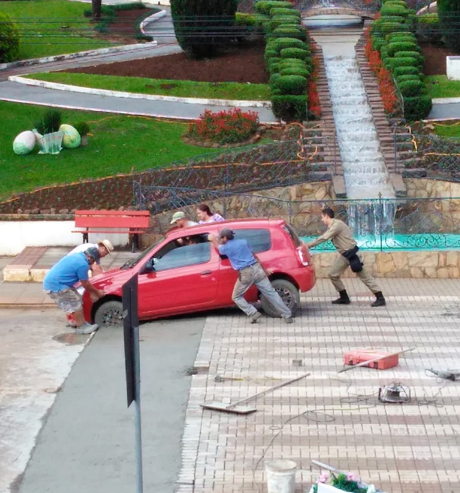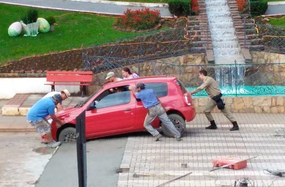 Em Treze Tílias um motorista desavisado inaugurou a faixa elevada antes da data prevista. Implantada em frente a prefeitura, e em manutenção, a faixa estava com a massa de concreto fresca. O motorista de um Renault Clio, placas de Caçador, morador de Salto Veloso, passou entre os cones de sinalização e acabou ficando preso no concreto. A cena foi registrada em frente a Praça Ministro Andreas Thaler. A prefeitura está fazendo reparos em algumas faixas elevadas do centro da cidade e por isso interrompeu o trânsito em alguns pontos. O motorista só conseguiu sair com a ajuda de populares e de um policial.