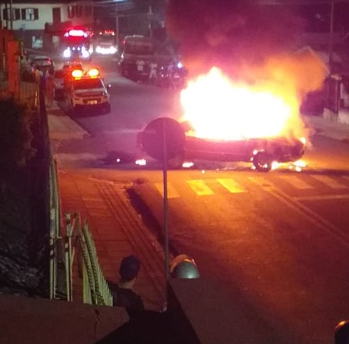 Um veículo em chamas chamou a atenção dos moradores e deu muito serviço para o Corpo de Bombeiros no início da noite desta quinta-feira (28) na rua Santa Catarina em Herval d’Oeste. UM Ford/Corcel incendiou por volta das 19h e quando os bombeiros chegaram o fogo já havia se alastrado. O motorista disse que estava descendo pela via quando percebeu que tinha algo errado. Abriu a porta e saiu, ao perceber que as chamas já estavam tomando conta do motor.