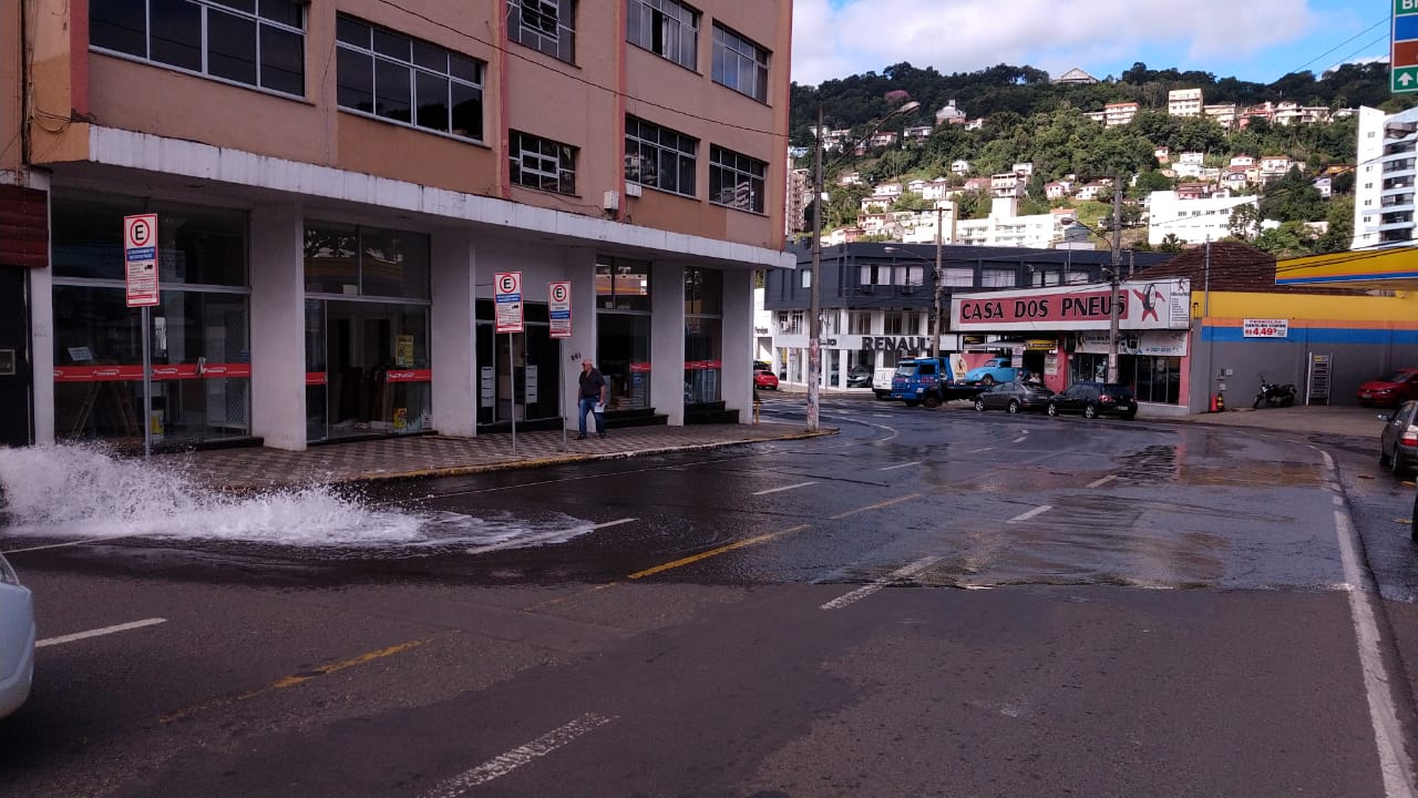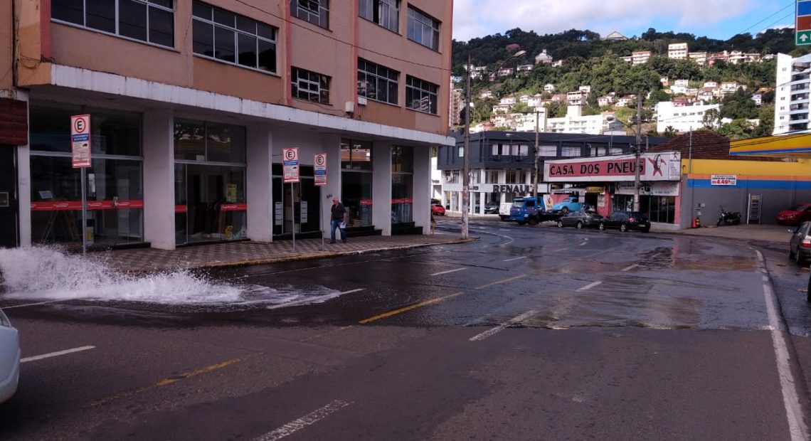 Abertura de hidrante na Rio Branco em Joaçaba chama atenção de motoristas e pedestres
