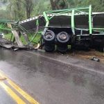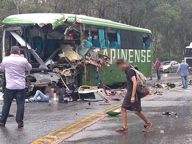 Conforme a Polícia Rodoviária Federal, a carreta descia a serra, quando o reboque fez um “L” e atingiu o coletivo.