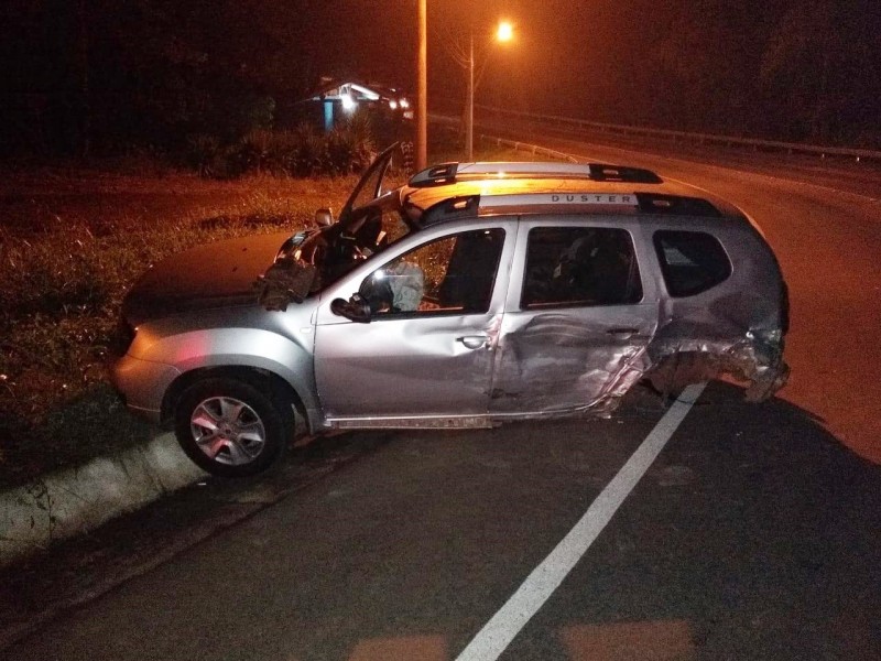 Um Renault/Duster com placas de Herval d´Oeste foi jogado para fora da pista após ser atingido por um VW/Up de Capinzal na noite desta sexta-feira (26) em uma curva da SC-453, em Luzerna. O acidente, registrado por volta das 22h20min no km 67 da rodovia, mobilizou Bombeiros e Polícia Militar Rodoviária.